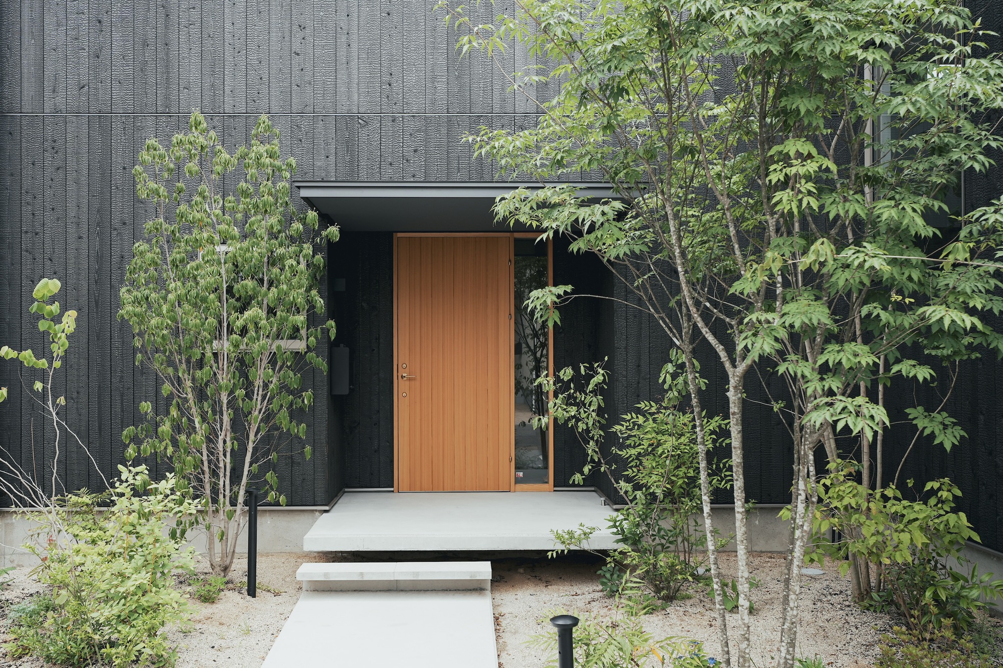 The exterior bears the signature of Ehime’s longstanding building practices with its Yaki-Sugi cladded walls a technique that involves the charring of Japanese cedar boards to create a naturally resilient and aesthetically pleasing surface. This somewhat antiquated yet enduring method not only resonates with the history of the locale but also embodies a tactile testament to the skills of the Daiku, or Japanese carpenter, bringing a touch of rustic allure to modern design.