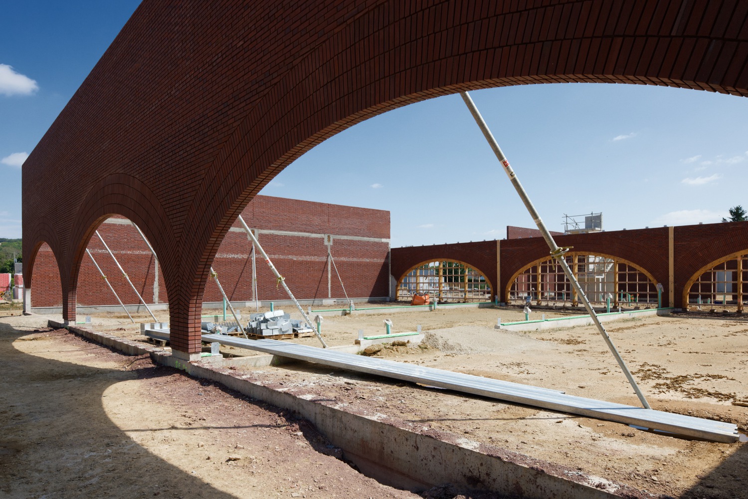Built in artisanal bricks, this construction narrates the power of the hand. 500,000 bricks, made from the local earth only a few km from the site, structure the space, announcing both resistance and lightness. Carefully laid, by companions and master masons, they have allowed the updating of know-how all while re establishing an intimate, emotional link to the building.