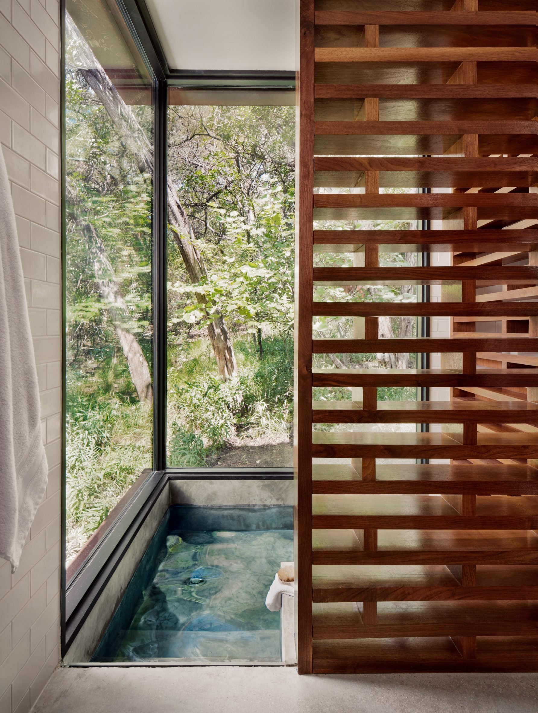 Respecting the natural setting was a guiding concern for the design team, as the home sits on a wooded perch overlooking the Guadalupe River.