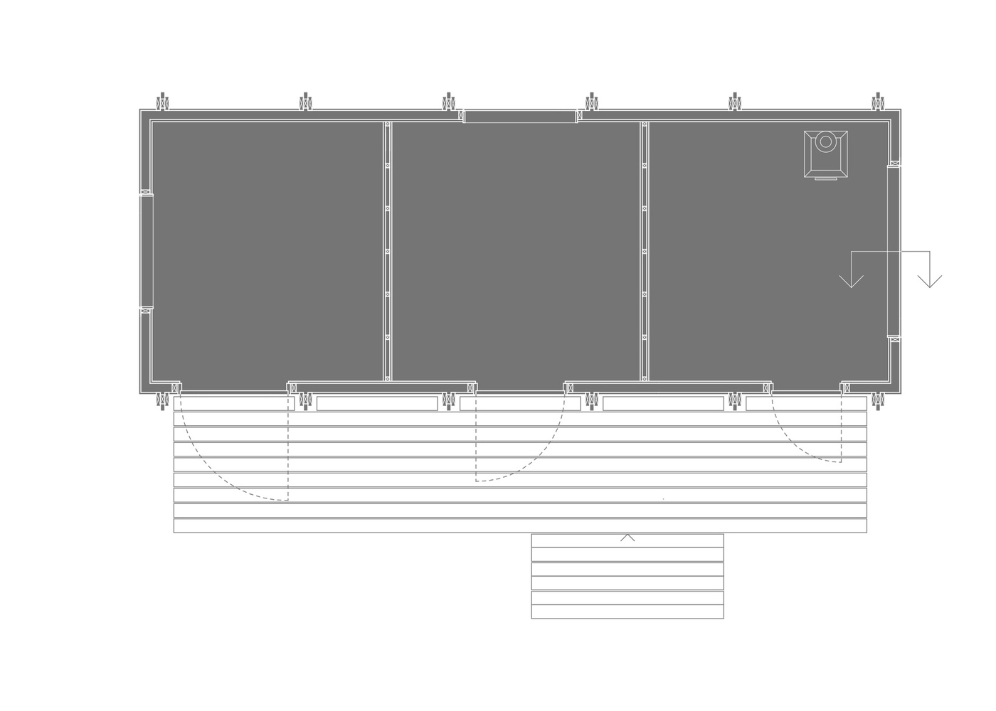 The space between the roof and the box provides space for canoes and oars. The large cantilever of the roof keeps the space dry. In our projects, the detail is especially important, and we usually try to use construction as an architectural element in an almost childish pedagogical way. In this building, we have chosen to expose the construction and clearly show how the box is suspended under the large roof. The windows in insulating glass are glued to the facade without a frame and secured with brass fittings.