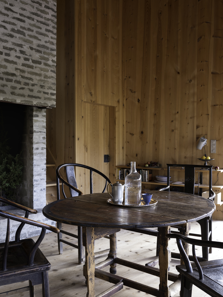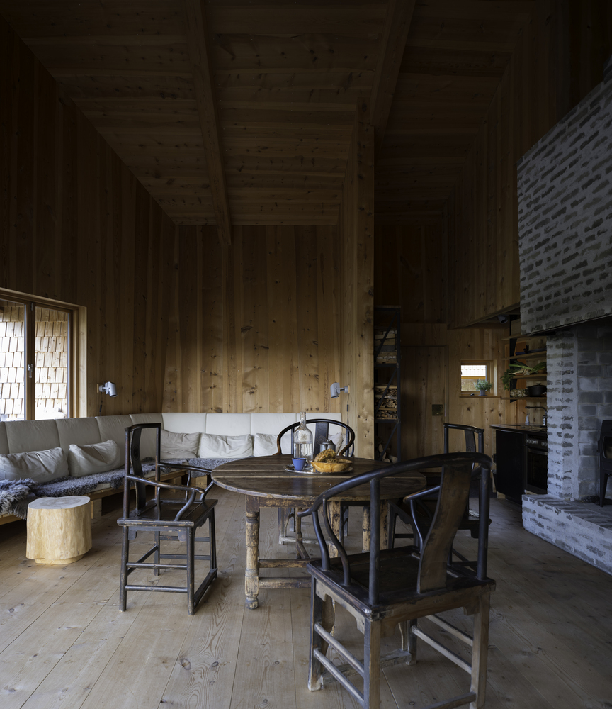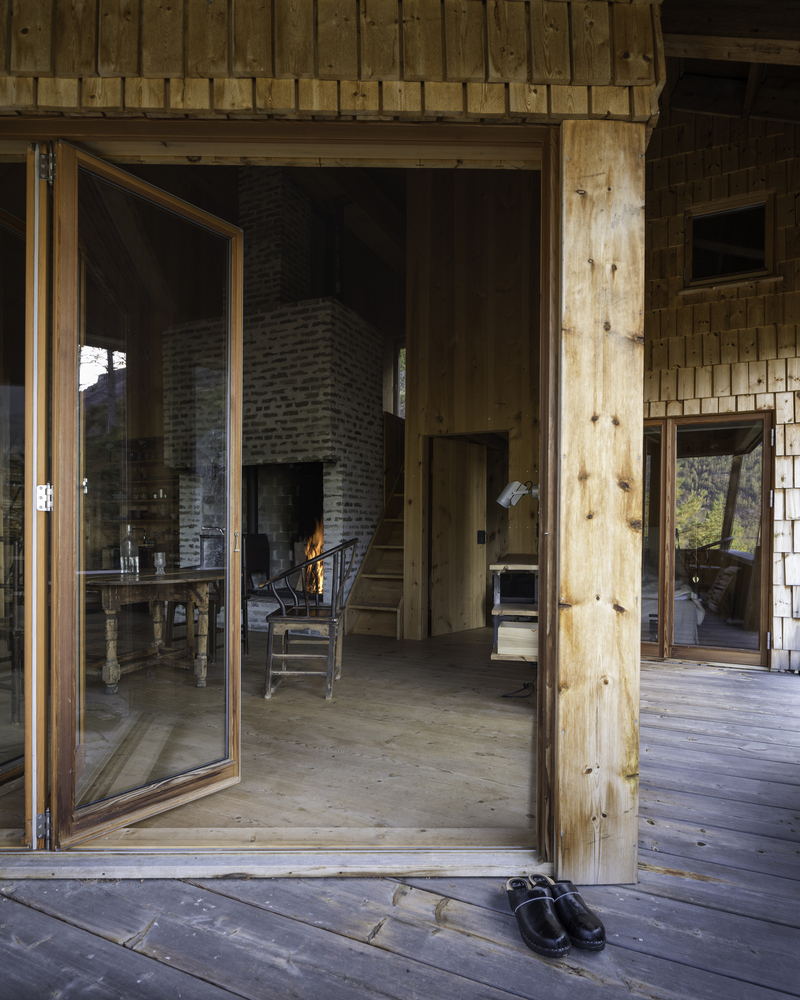 The cabin in the woods is inspired by reading Henry Thorea´s "Walden Pound". Architectural design is closely related to old farmhouses from the local valleys. The central room is dominated by a large fireplace and large room height. It opens onto the sun and lake views.