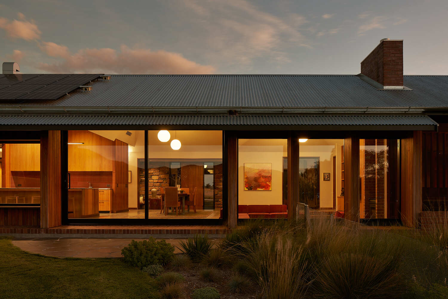 This semi-rural house on ex grazing land in Tamworth was designed to transform a scrubby, parched piece of land into an energy-efficient contemporary home set within a landscape of regenerated native plants.