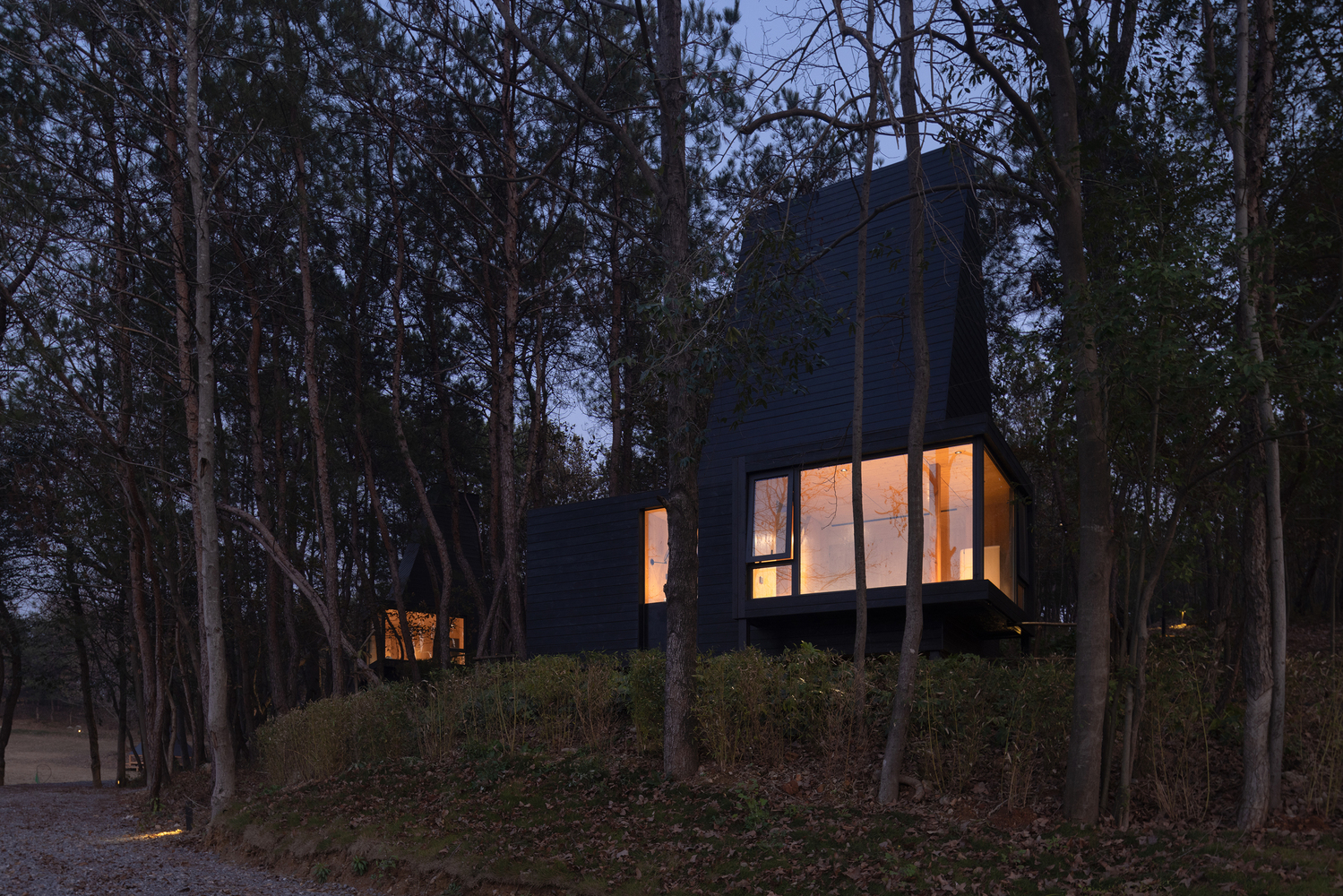 자연과 가까워지는 방법. 13개의 우드하우스는 사람과 자연을 연결하는 매개체 역활을 자처한다. 최소한의 건축으로 구축된 파빌리온은 총 13개의 타입으로 각기 다른 디자인이 적용된다. 박공지붕, 삼각형태의 파빌리온의 경우 싱글룸의 형태로 제안된다.