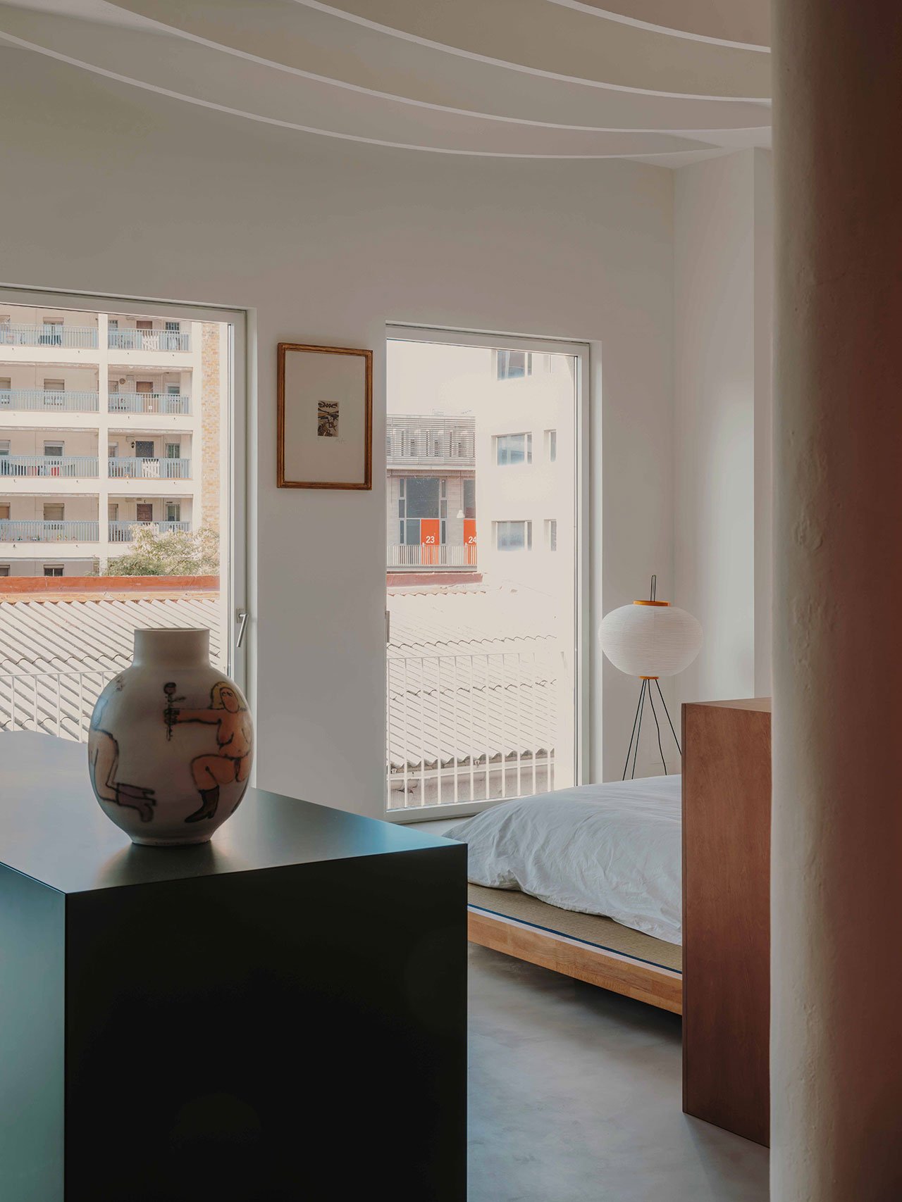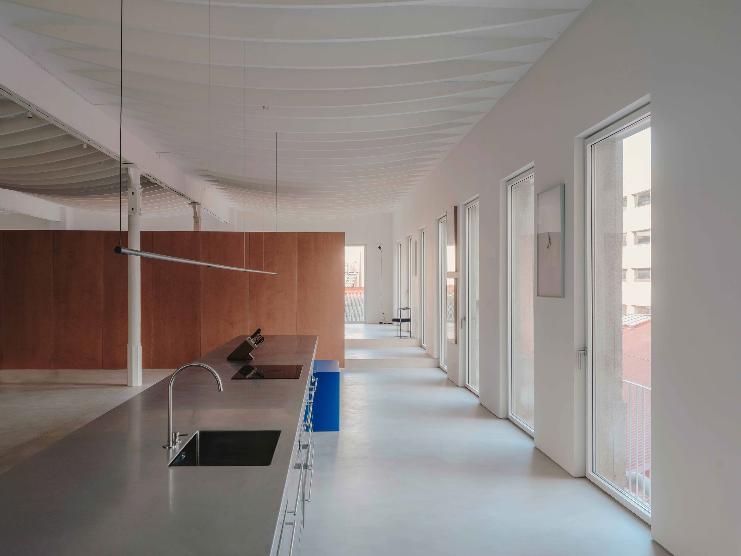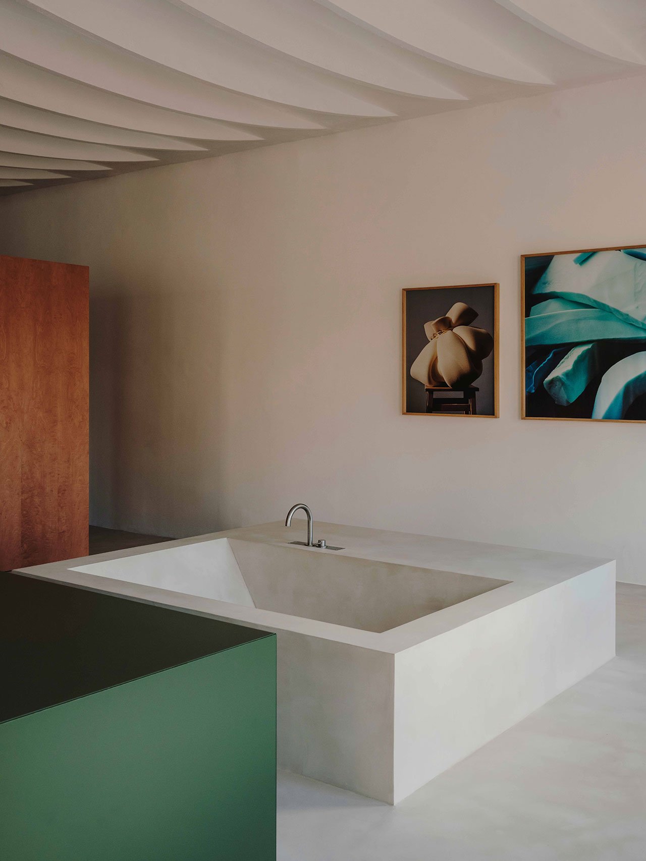 Commissioned by a Barcelona based gallerist to transform a former industrial space into a gallery space that doubles as a home, local architecture and design studio MESURA applied a no-nonsense aesthetic of minimalist sophistication that enhances the property’s architectural qualities, namely the bountiful natural light, open-plan layout and structural distinctiveness. In order to keep interventions to a minimum, the Studio embraced a sculptural vocabulary of detached cubic volumes inspired by artist Donald Judd’s three-dimensional work and non-hierarchical approach to art, design and architecture. The result is a constellation of larger and smaller objects that discreetly delineate a flexible living area and a smaller private zone without sacrificing the property’s inherent lightness and fluidity. Combined with a muted colour palette and a design-led curation of bespoke and modernist furniture, CASA VASTO's spatial poetics confidently walk the line between an art gallery and a domestic haven.