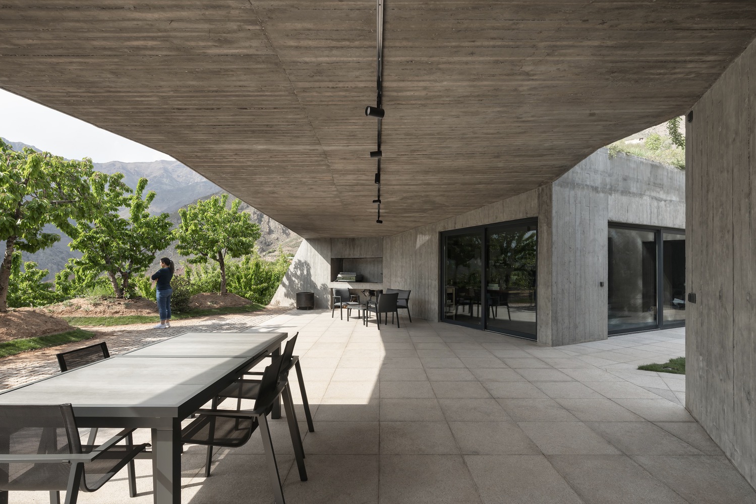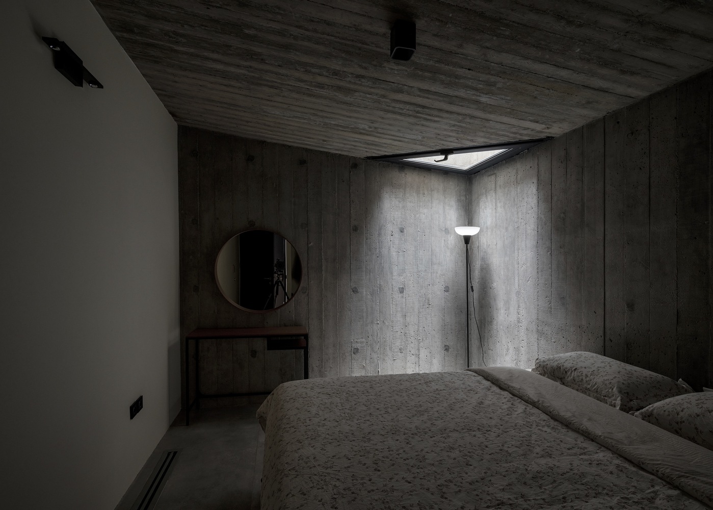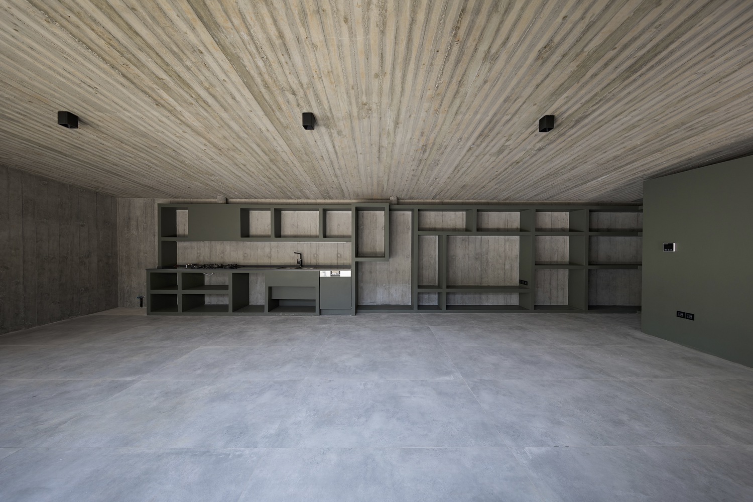 3개의 동굴은 각각 침실, 거실, 수영장과 유틸리티로 구성된다. 건물과 건물로 이동하는 사이에는 자연과 호흡하는 독립적인 공간이 존재한다. 공용공간의 최대장점은 채광과 조망을 적극적으로 확보하는 것이다. 반대로 마당 반대편에 있는 침실은 외부로 드러나지 않도록 최소한의 노출로 구현한다.