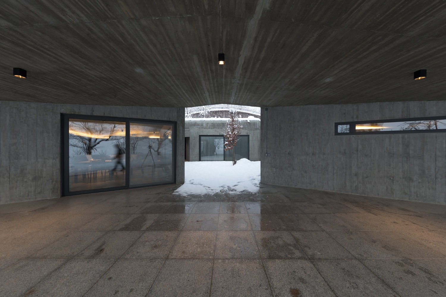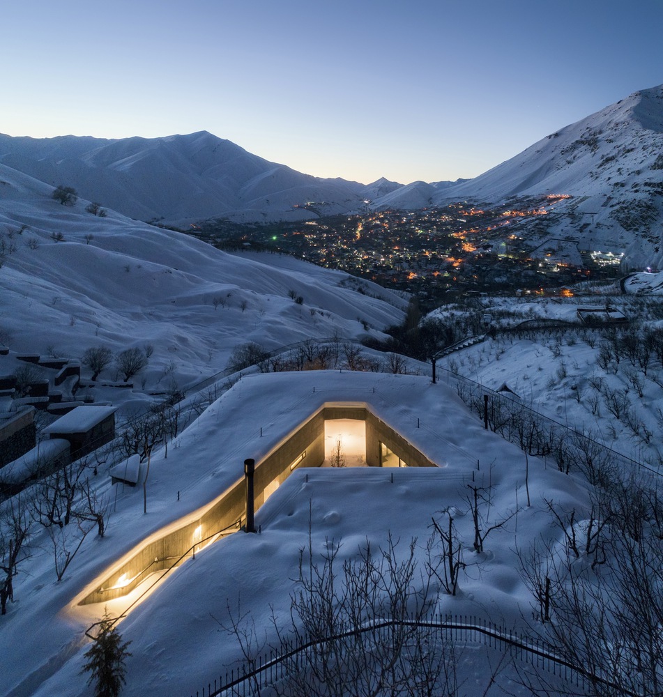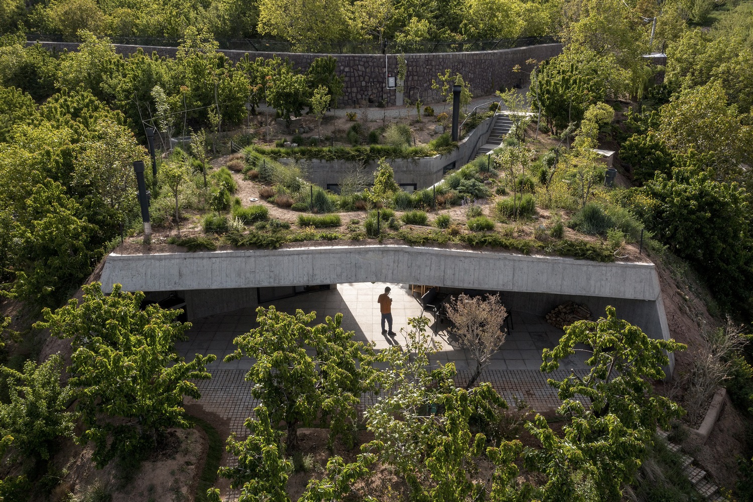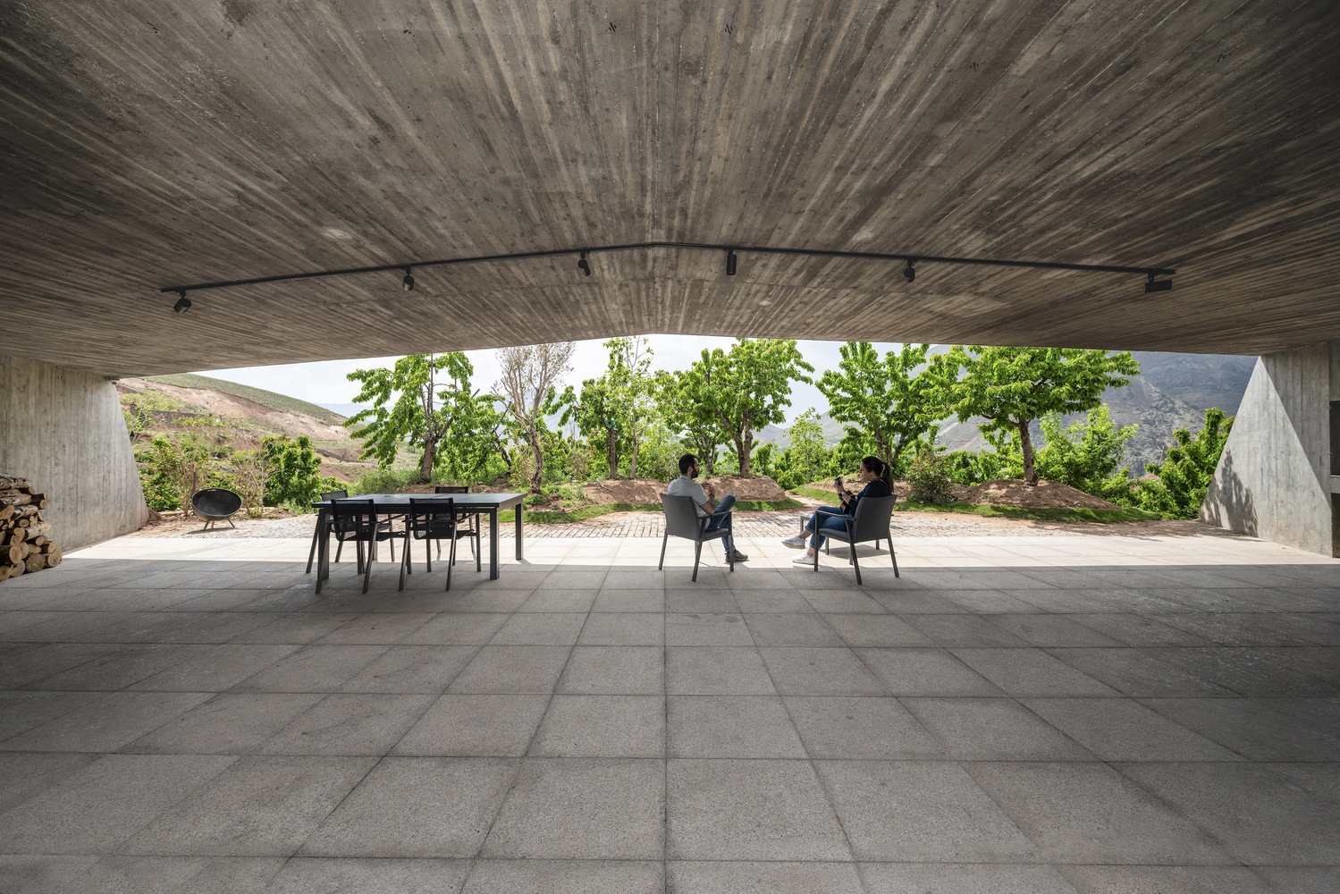 In this Residence, people are allowed to experience another way of collective life that enables them to face more of the nature that has been rejected in the city. Therefore, three separate 70 square meter caves have been dug around a hole in the center of the ground that provides for this accommodation camp's needs.