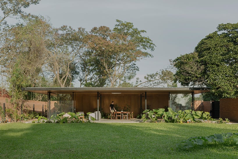 Architecture firm Equipo de Arquitectura explores efficient resource utilization and a strong connection with nature in its latest project, a small house in San Bernardino, Paraguay. Embracing the Miesian principle of ‘fast nicht’ (almost nothing), the design focuses on simplicity and economy of means. Divided into two sectors, the house features a large, open social space with glass openings and wooden panels, creating a flexible reception gallery.