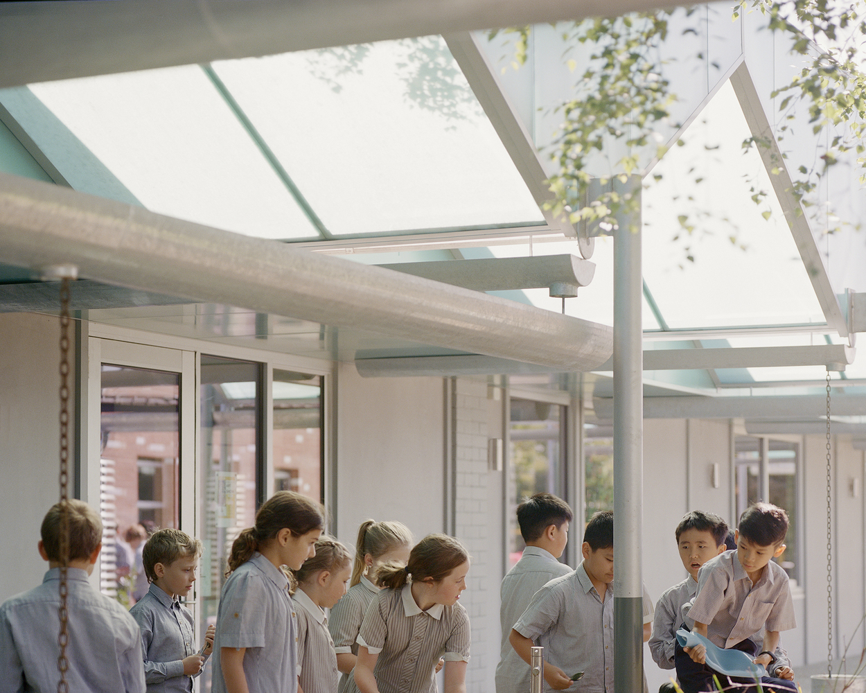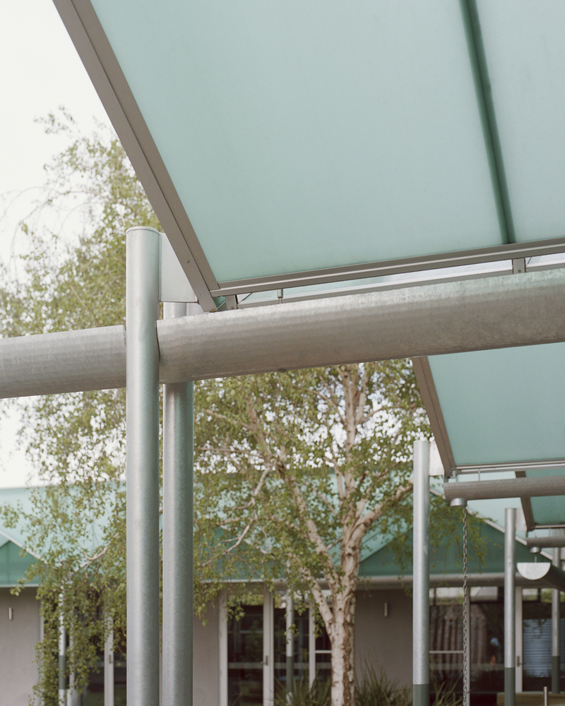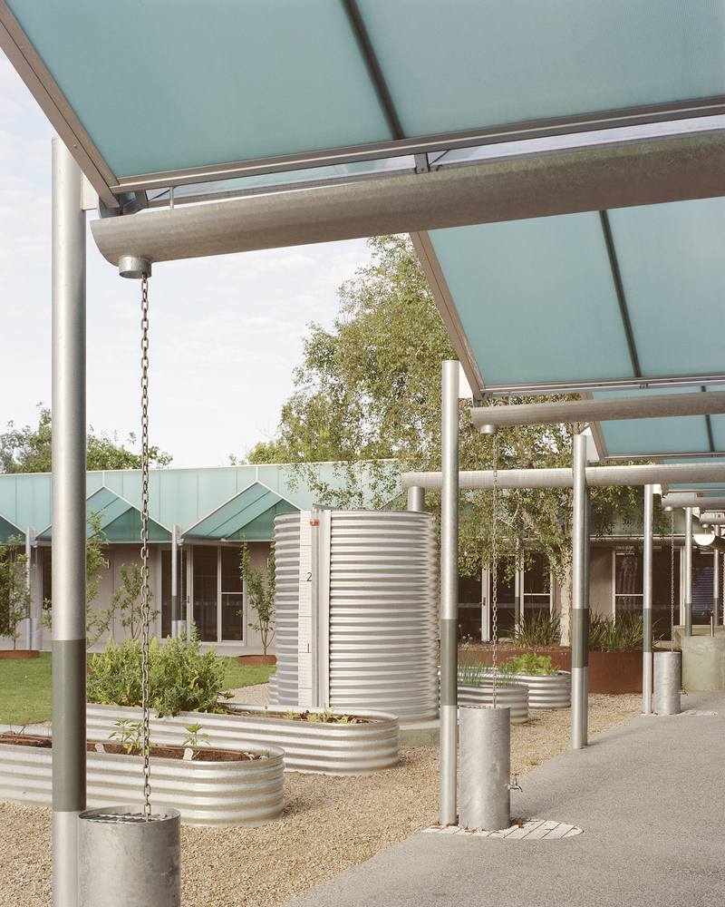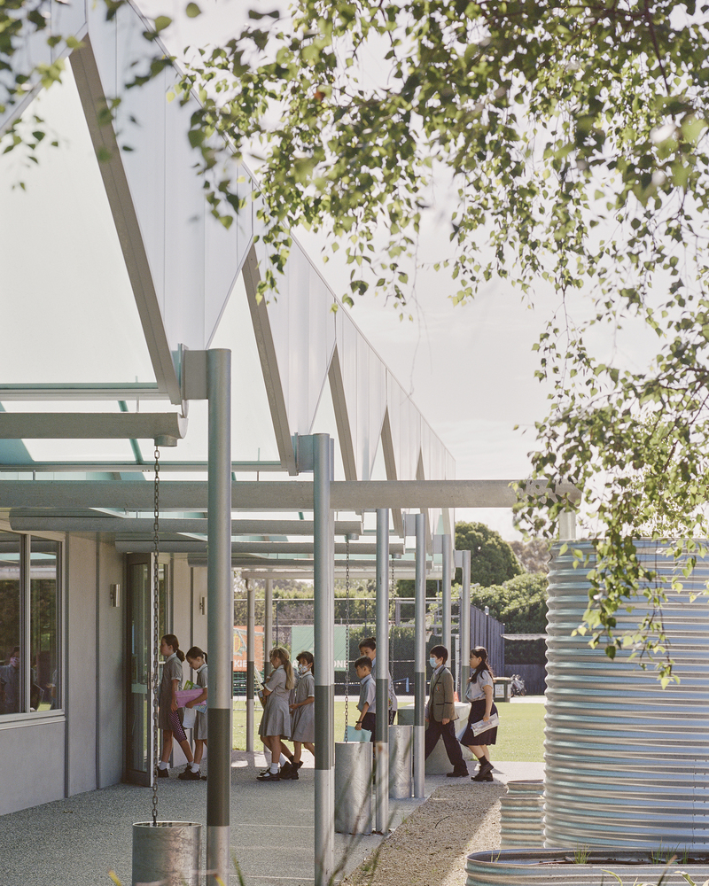 As well as seeking to reduce environmental impact through adaptive reuse, a key ambition of the project was to celebrate the school’s focus on sustainability through the ‘Living Lab ' Lab‘concept. The architecture acts as a pedagogical tool that displays sustainable practices and learning, providing a means of engaging with students and the wider school community. A light filled canopy makes the rainwater harvesting process perceivable and interactive through its architecture.