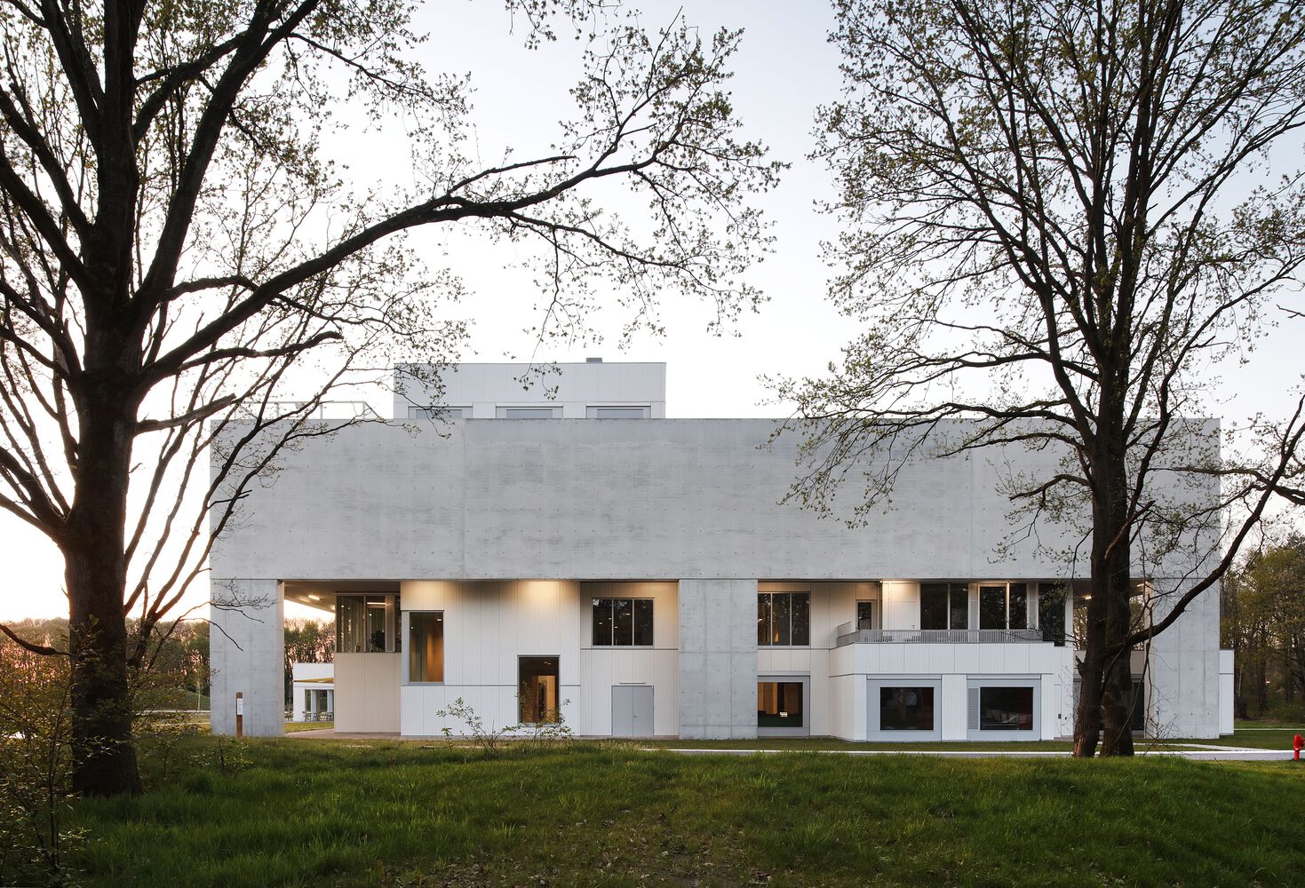 Bovenbouw Architectuur and ono architectuur designed a communication center for the storage of low and medium-level radioactive waste in Dessel, Belgium. To remain relevant throughout the 300 year process required to decrease the radioactivity, the building must be able to adapt to unforeseeable changes over the centuries. Aiming for dialogue and opportunities to play the widest possible role, we proposed a building consisting of two parts; an imposing structure that floats like a table more than 12m above the ground in which exhibition spaces are located, and an airy infill below that accommodates the multifaceted program of spaces, halls and offices.