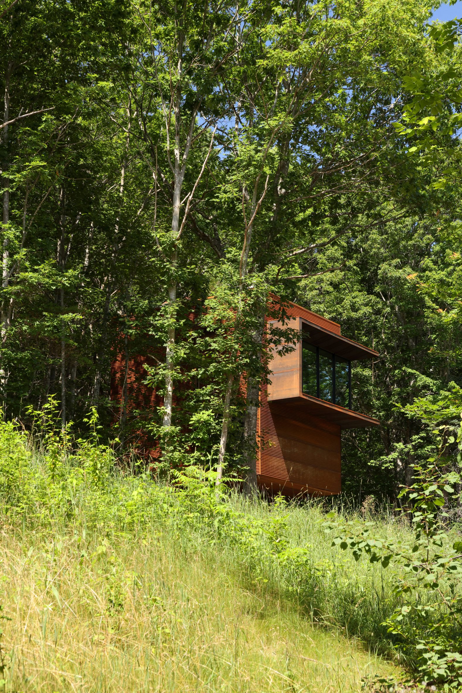 캐나다 스튜디오 오마르 간디가 디자인한 코르텐 스틸 외관의 하우스가 노바스코샤의 우거진 숲속에 자리한다. 가느다란 기둥 위에 코르텐 스틸로 마감된 오두막은 마치 오리부리를 연상시키는 모습을 띈다.