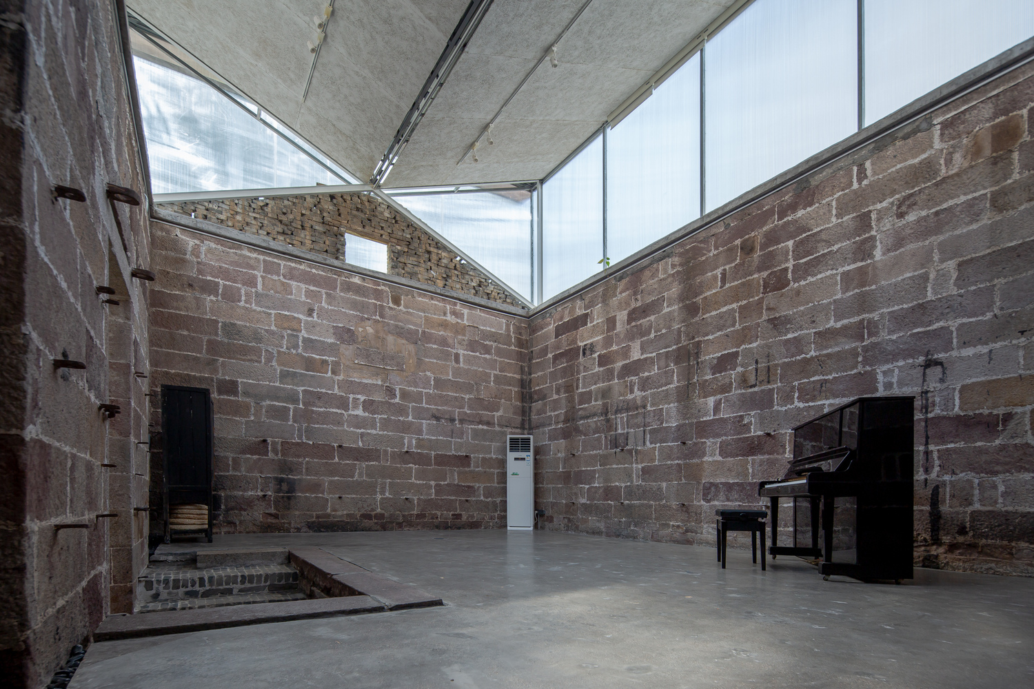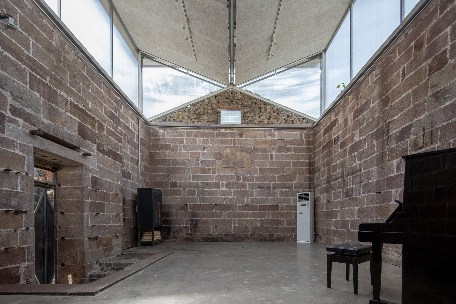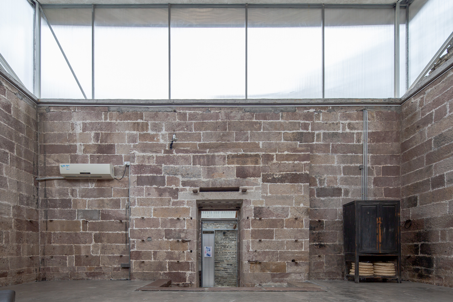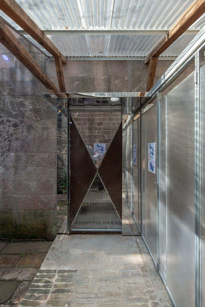 The open nature of the team clashes with the defensive attributes of the pawnshop storage building in terms of its architectural design. Features such as a 5-meter high, half meter thick red sandstone wall, narrow and tall doorways, and more than a meter of elevation difference between the interior and the park create an experience that feels like entering a fortress or a hidden chamber, making it difficult for people to approach due to a sense of resistance.
