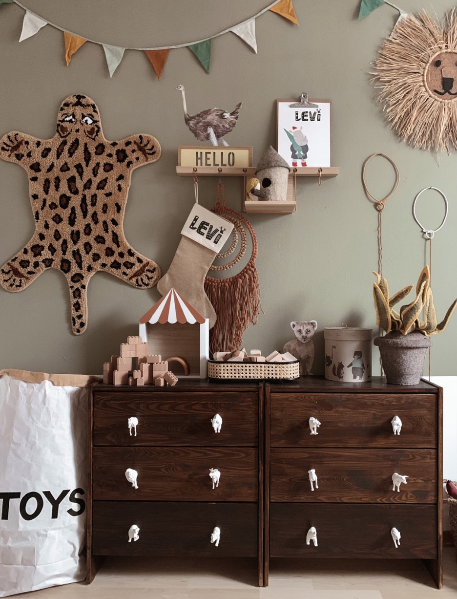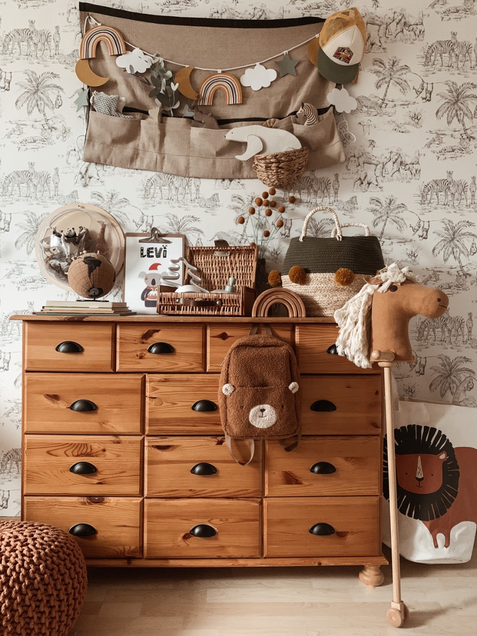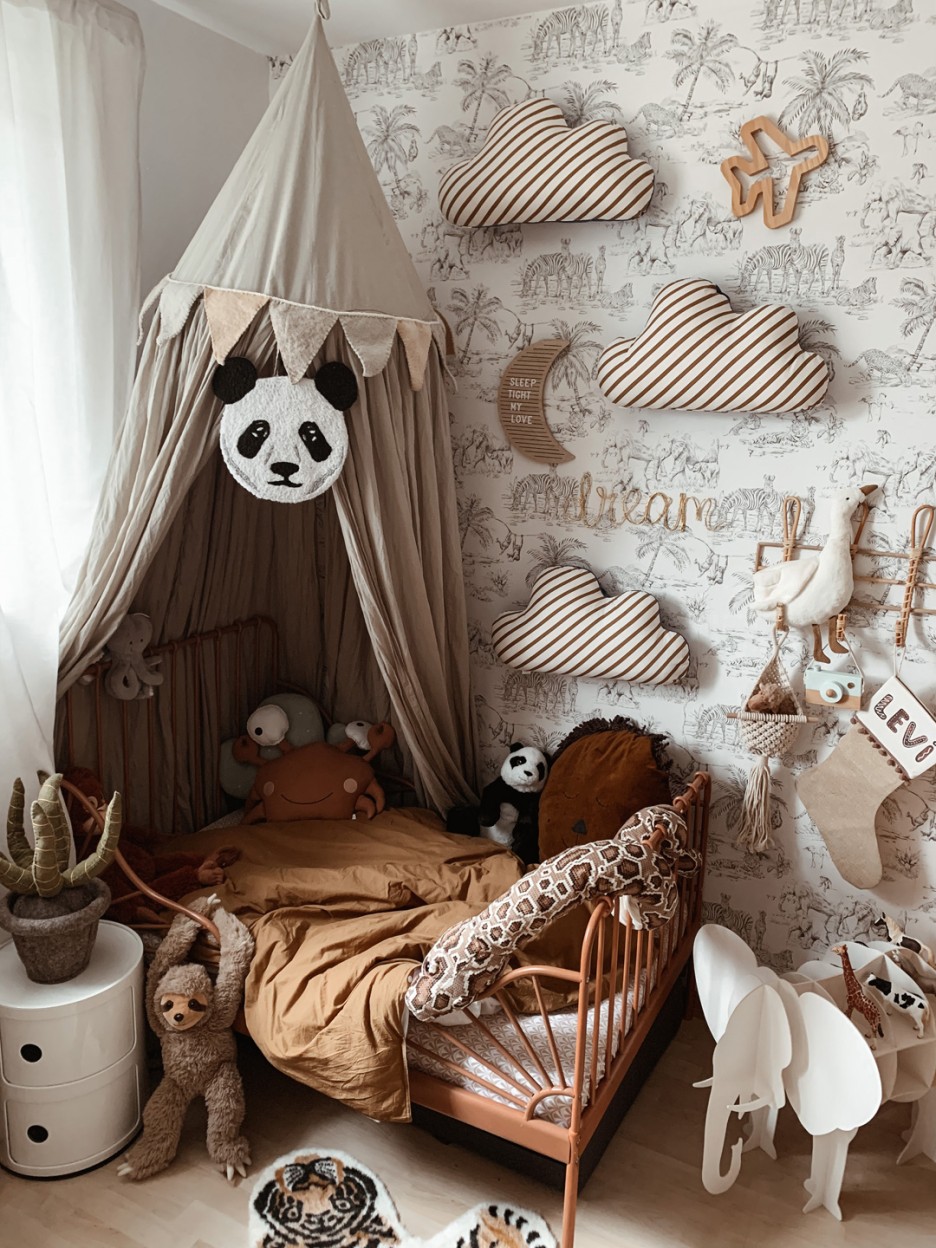 Stepping into two-and-a-half-year old Levi’s bedroom is like venturing into a vast and magical wilderness. It’s busy but beautiful. A hive of animal activity with layer upon layer of intricate detail. It’s childlike and innocent yet has an air of sophistication that wouldn’t be out of place for an older inhabitant.