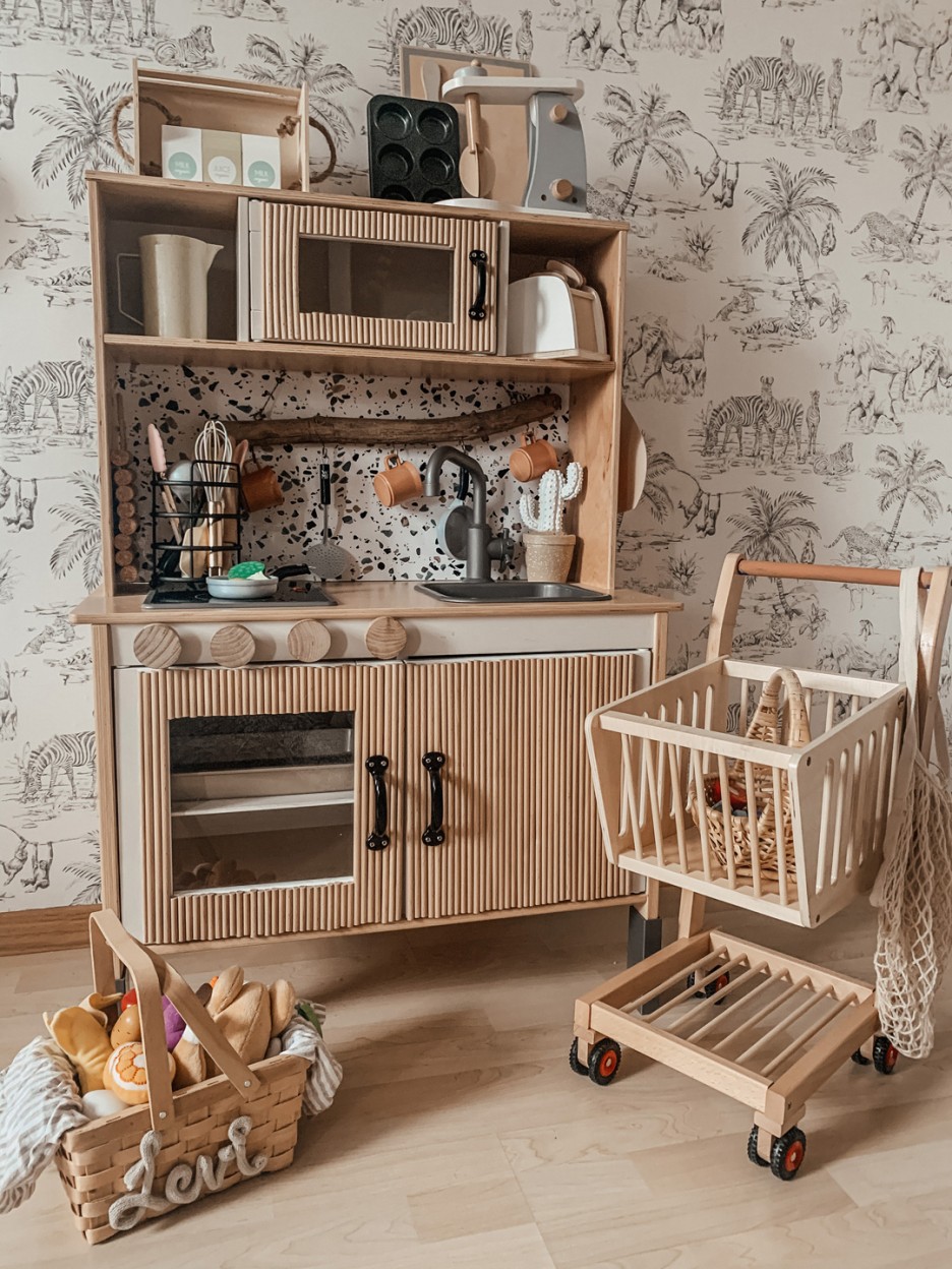 The thing we love perhaps the most about this imaginative room set is the level of personalisation, and its creator’s evident love for all things DIY. That creator is Sara, mother, flight attendant and VIP Relations Manager for German baby brand, Rookie. Of course, we should add to that extensive list, self taught stylist, queen of upcycling hacks and owner of Made Of Stardust, a shop specialising in custom nursery art and decorative items.