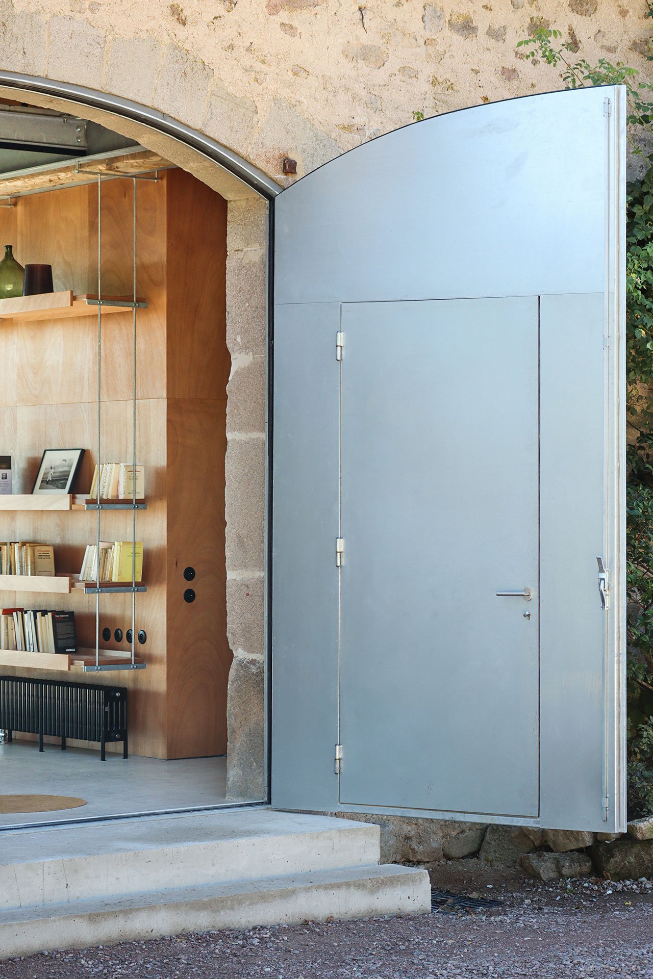 리노베이션의 핵심은 기존 석재 벽과 목재보를 존치하면서 건물에 새로운 금속과 목재구조를 삽입하는 것이다. 이 구조는 공간을 넓은 거실과 2층에 침실 2개가 있는 개인 공간으로 나눈다. 동시에 선반, 조명, 난간, 미닫이문 그리고 행잉 네트와 같은 다양한 가구를 지지하는 프레임 역활도 한다.
