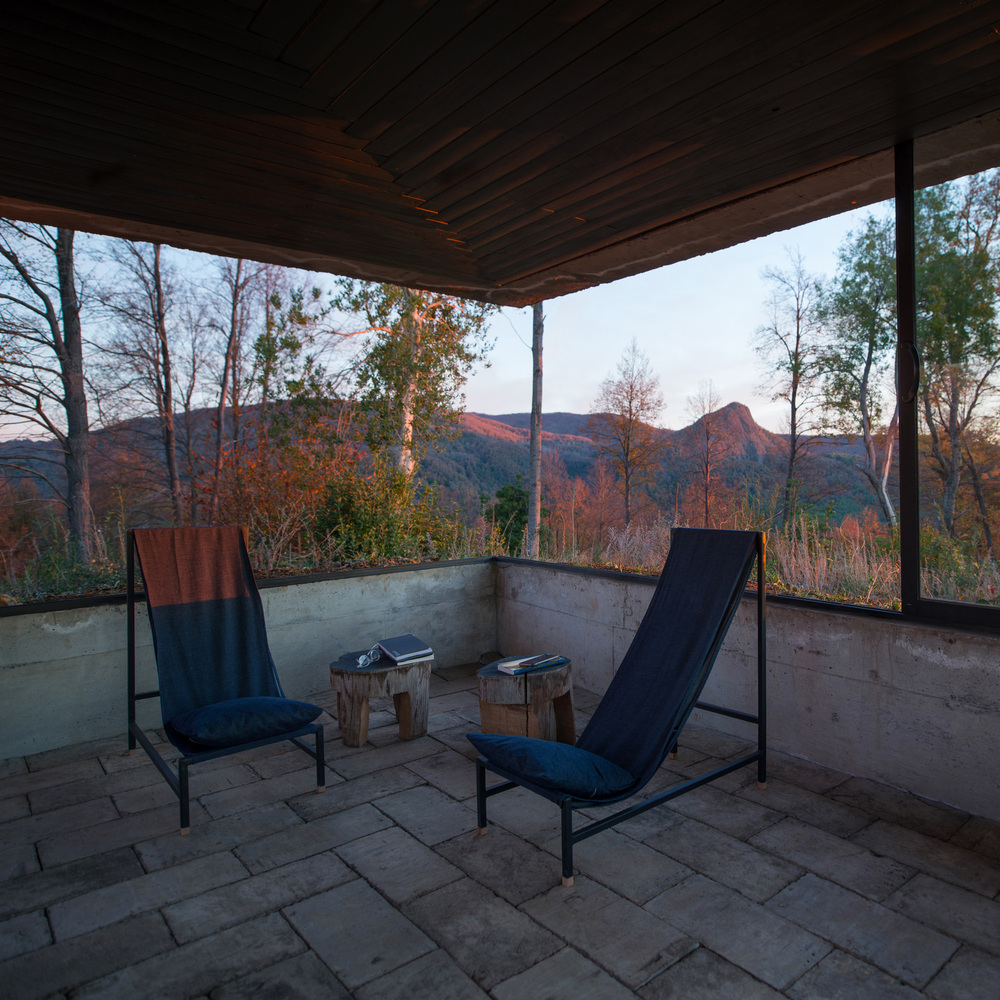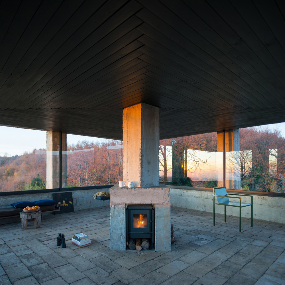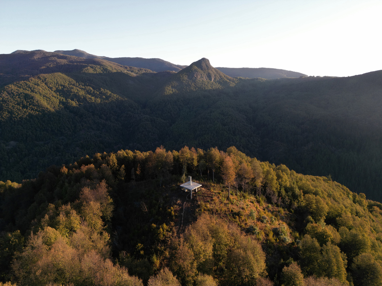 This solitary figure functions as a signal and as a viewpoint of the landscape (both interior and exterior). With a vertical sequence of rooms, it was built to overlook the Andes Mountain Range, hidden behind the native forest.