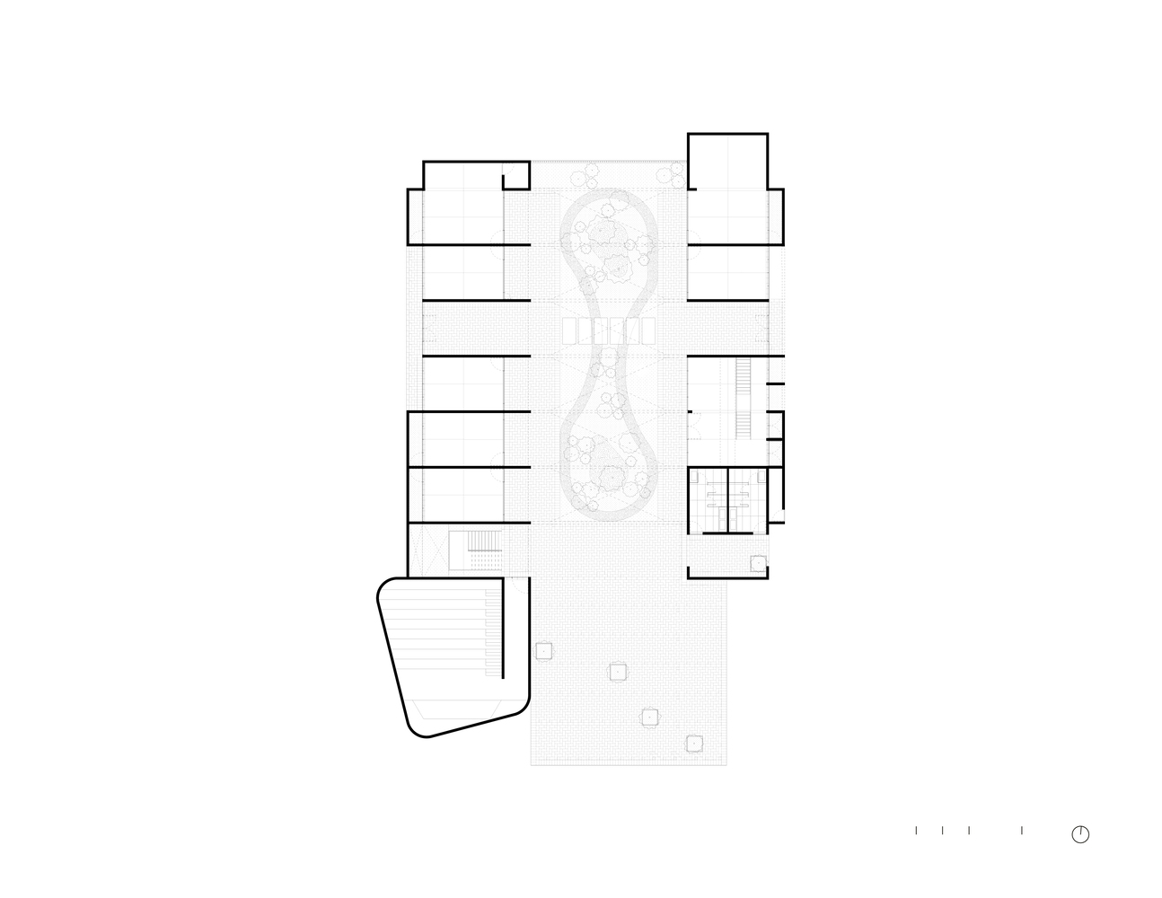 The perforations in the concrete panels create the necessary void for an interior garden, providing an urban oasis with a pleasant microclimate. The central garden concentrates the core of the work, a vibrant space that allows for interesting views from inside the building.