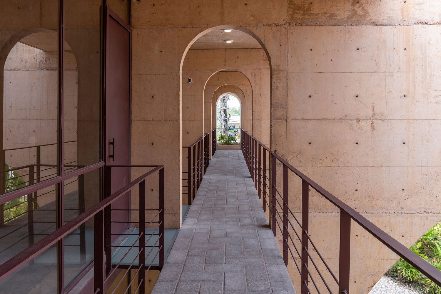 As a local identity mark, orange toned concrete was used, evoking the color of the regional quarry present in the balustrade of the main arcade of the historic center of Jalpa de Méndez. This choice also responds to the region's climate, reflecting the warmth and avoiding the accumulation of humidity.