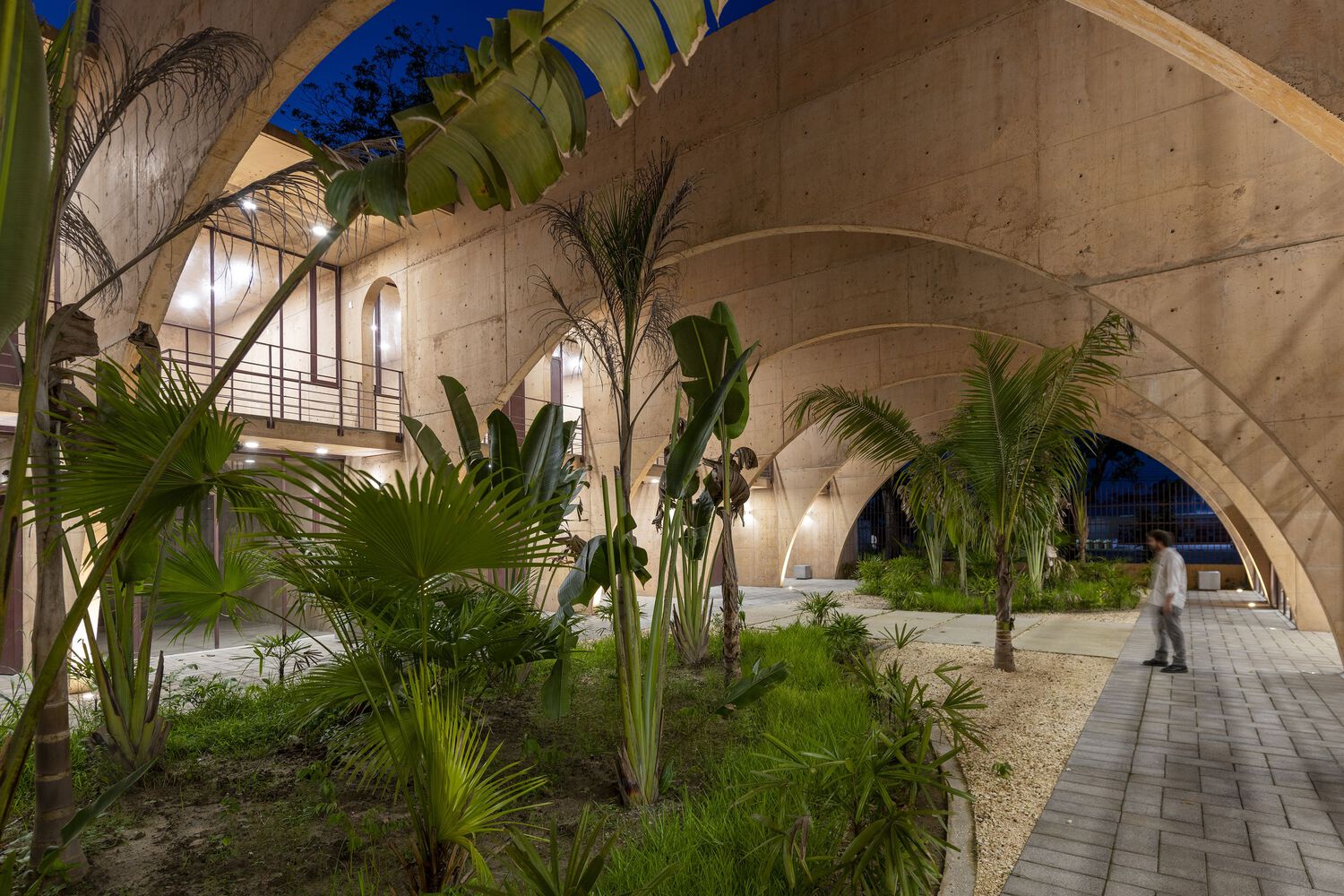 The project was conceived as a habitable sculptural piece, with an architectural program composed of workshops, multipurpose rooms, a library, an auditorium, and an administrative area. These are developed through a simple structure, composed of eight monumental concrete panels perforated with semicircular arches.