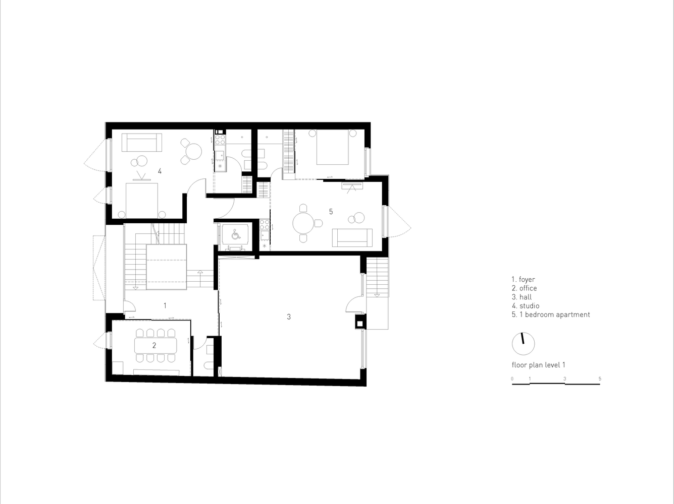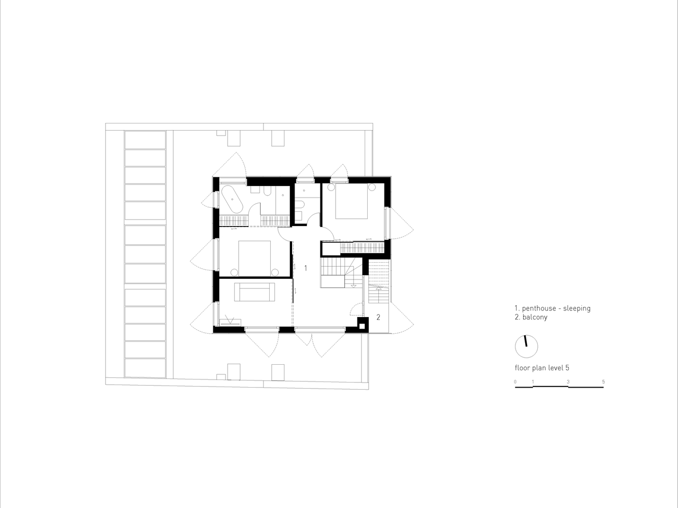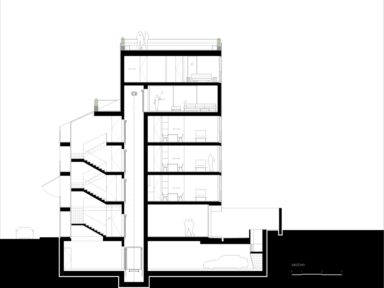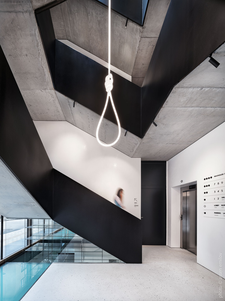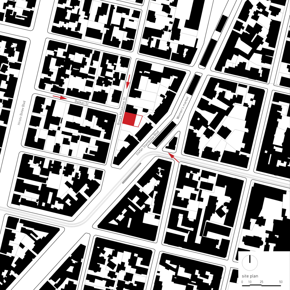 소피아의 분주한 시장거리에 위치한 건물은 두개의 볼륨으로 이루어져 있다. 각자 다른 방향에서 얼굴과 스케일 그리고 전망을 구성한다.