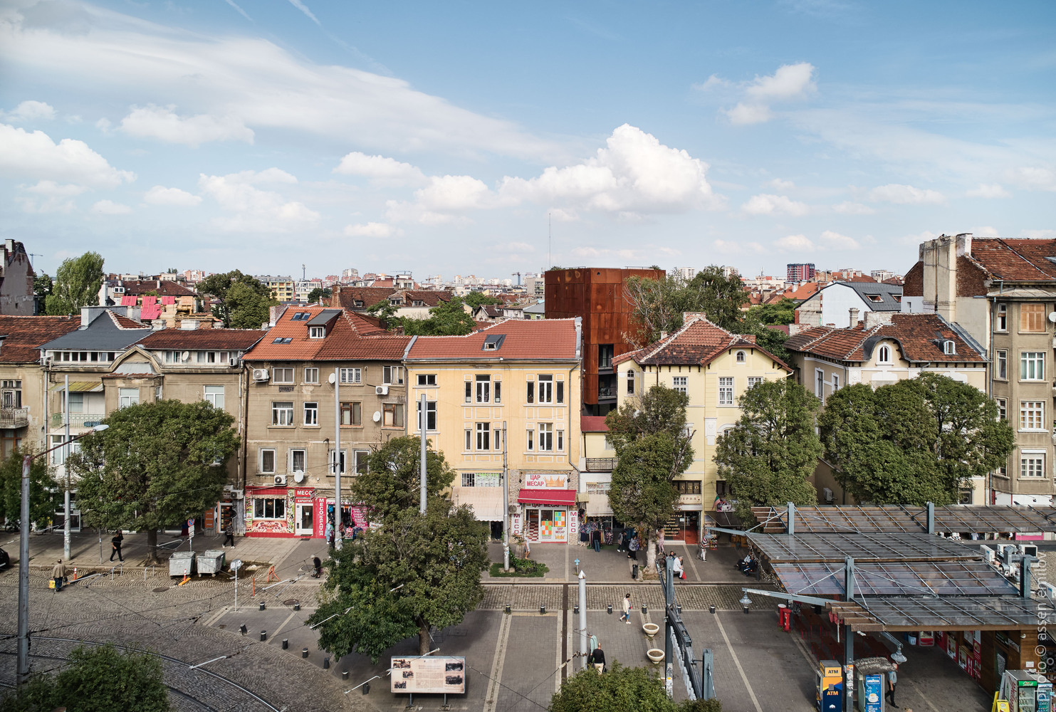 Embedded in the urban complexity of the biggest street market in Sofia the simple two volume structure of the DOT Sofia building manifests unexpectedly different faces and scales from the possible viewpoints.