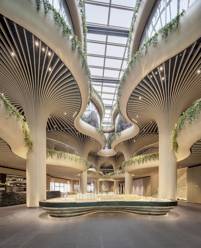 코이치 타카다 건축가가 설계한 32그루 나무로 이루어진 상하이 '아키텍쳐 포레스트'는 리테일샵과 도시속 자연을 형상화하는 미래상징으로 제안된다.