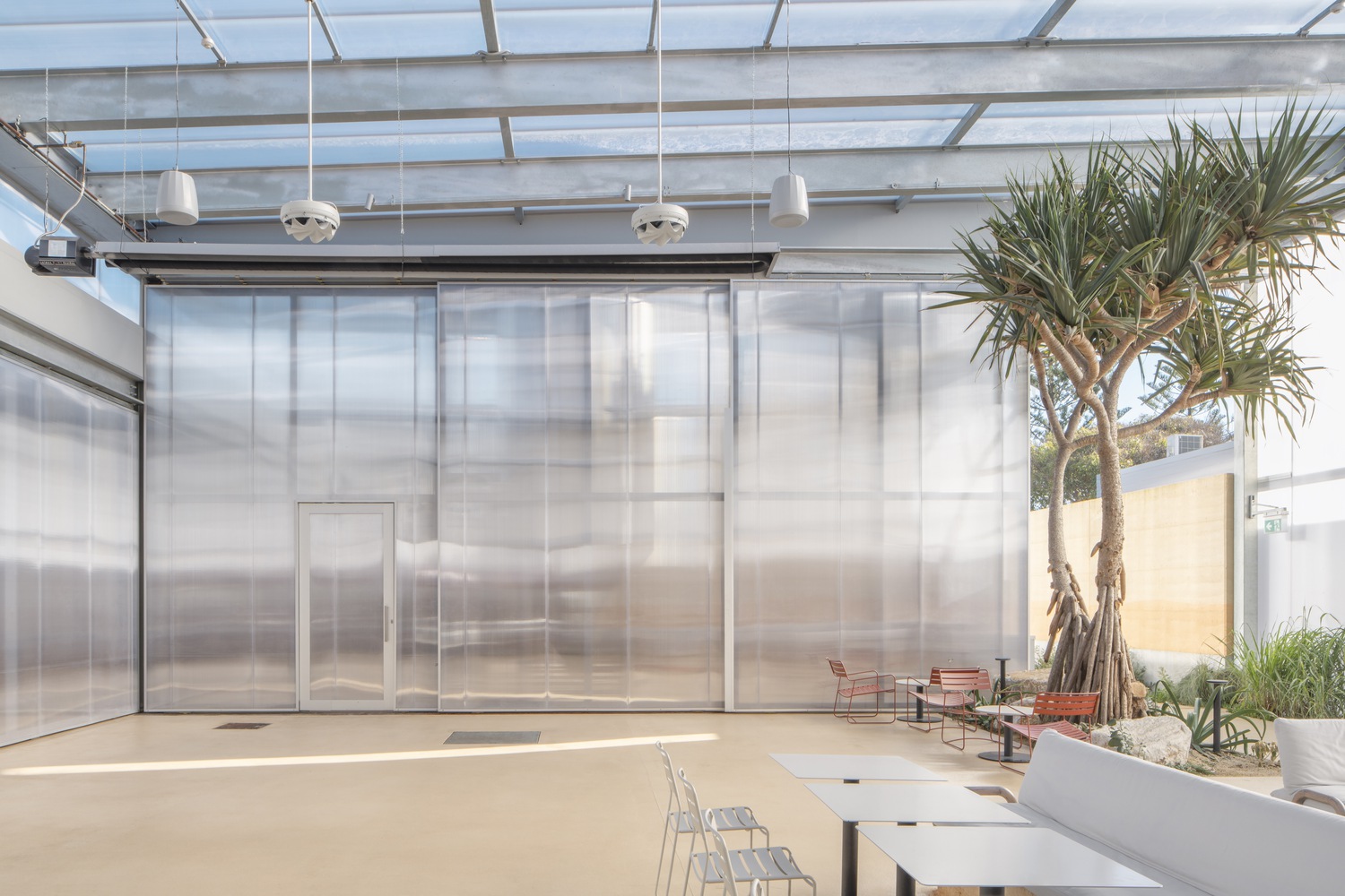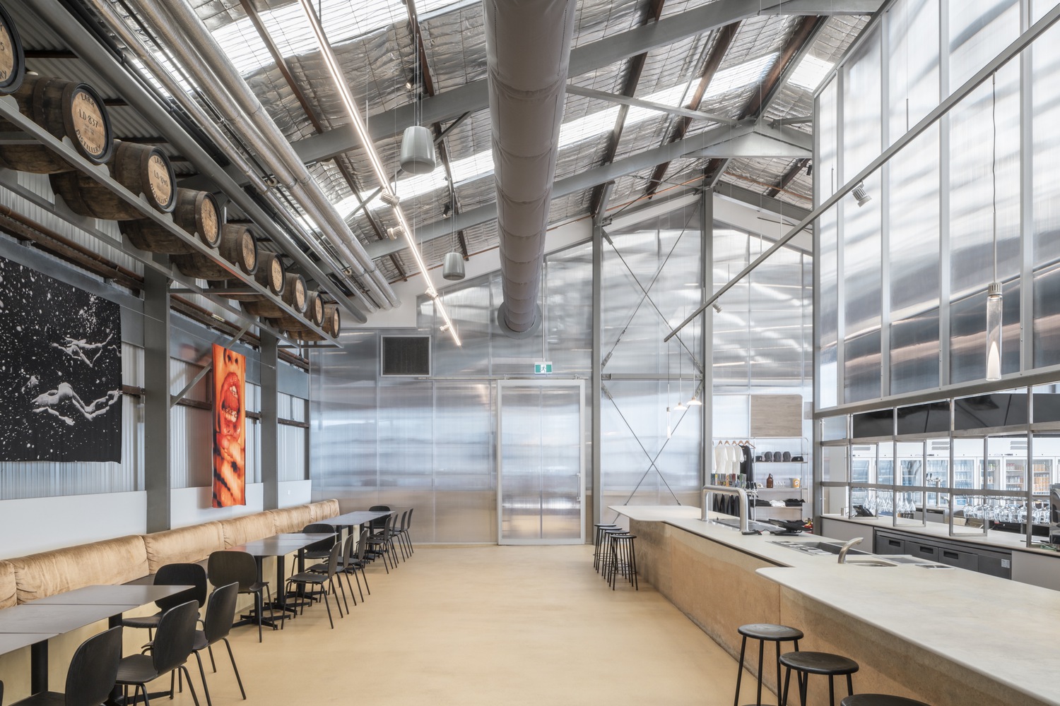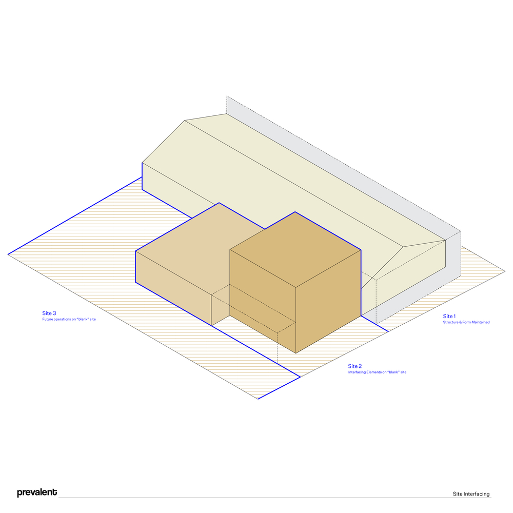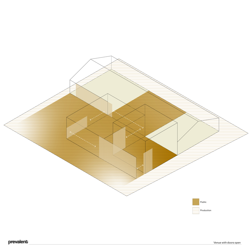 An existing post war portal frame shed is peeled open to one side. Structure and floor levels are maintained and strengthened where required. This opening interfaces with a new, sleeve-like addition. 250m2 of sliding planes wall an outdoor space, brewery, and hospitality venue, and give the option to be slid along their tracks, allowing an external space to become internal, private space to become public, and every modal variation in between.