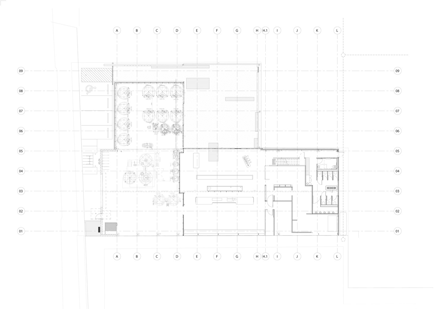 우리의 자연 환경은 그 어느 때보다 변동이 심합니다. 과거에는 일정했던 계절 패턴이 이제는 끊임없는 유동 상태에 놓여 있습니다. 계단식으로 진행되는 환경 악화에 적응하기 위해 건축은 내부와 외부를 보호하는 유연하지 않은 외피로 벽의 유형을 점점 더 살찌우거나 필요에 따라 사용자가 조율과 작동 방식을 조정할 수 있는 유연한 외피라는 두 가지 기본 입장에 서게 됩니다. 모더스 오퍼란디 브루어리는 후자의 사례를 제시합니다. 전후에 지어진 기존 포털 프레임 창고의 한 면이 벗겨져 있습니다. 필요한 경우 구조와 바닥 레벨이 유지되고 강화됩니다. 이 개구부는 소매처럼 생긴 새로운 추가 공간과 연결됩니다. 250m2의 슬라이딩 평면은 야외 공간, 양조장, 접대 장소를 벽으로 둘러싸고 있으며, 트랙을 따라 미끄러질 수 있는 옵션을 제공하여 외부 공간을 내부로, 사적인 공간을 공공 장소로, 그 사이의 모든 모달 변형을 가능하게 합니다. translate by DeepL