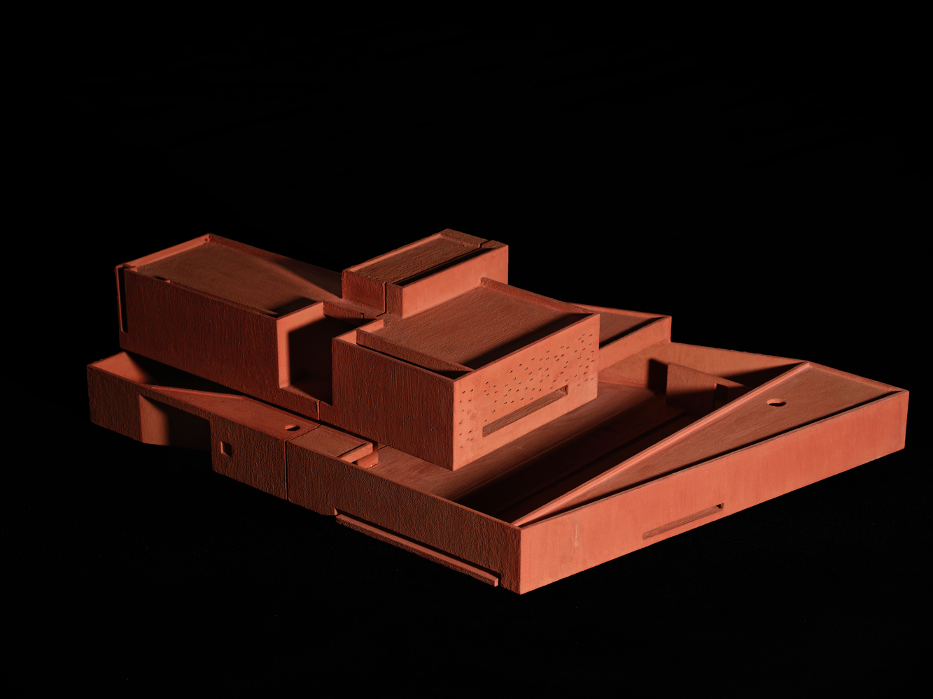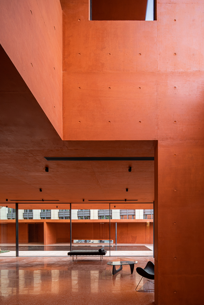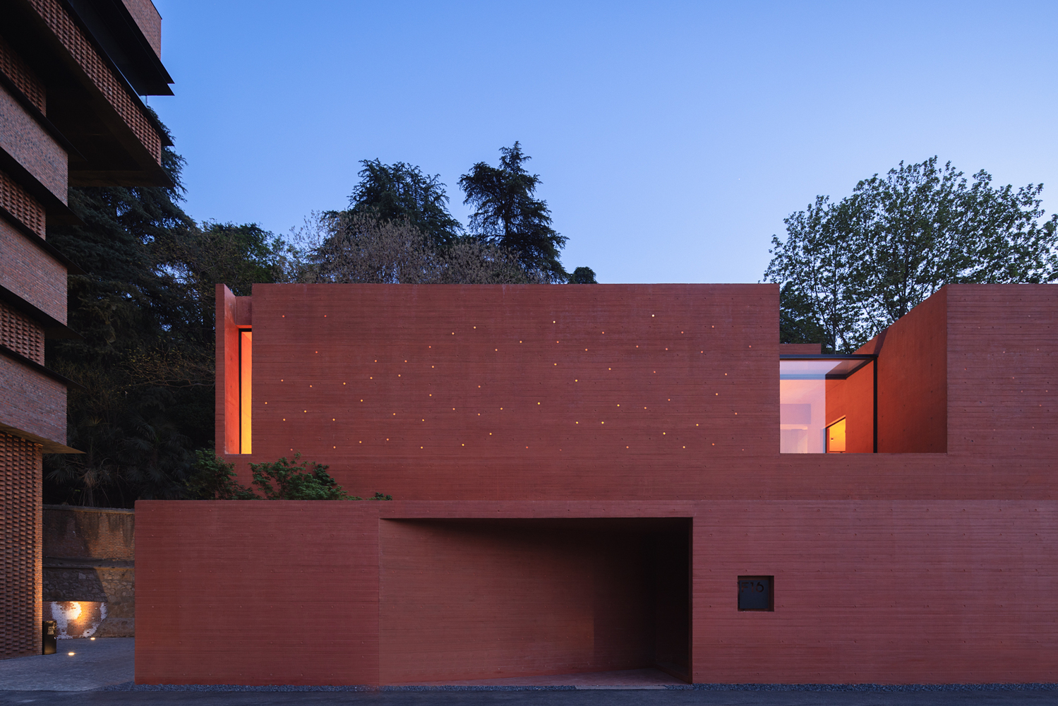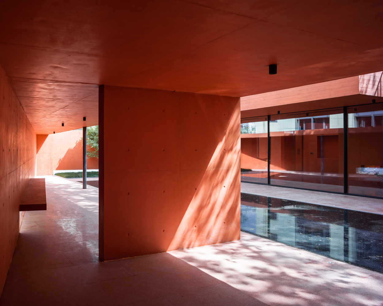 The Red Box is located at the foot of Red mountain, Naning, which is also in the Hongchuang park designed by Mix architecture. With the forest surrounding Red mountain, the sculptural volume of the Red Box makes it unique. The Red Box is made up of red concrete. "Red" responds to the environment, which has three different meanings. First, the Red Box responds to the "red" of chronological memory. Hongchuang PARK, which is formerly known as Nanjing Combat Machinery Factory. Nanjing Combat Machinery Factory was founded in the 1950s and has experienced vigorous development since the founding of New China. The "red" memory has accompanied the growth of several generations. Secondly, in response to the "red" of the original red brick building of the Hongchuang PARK factory area, Mix Architecture decided to make the Red Box a unique building with the same rhythm as the factory.