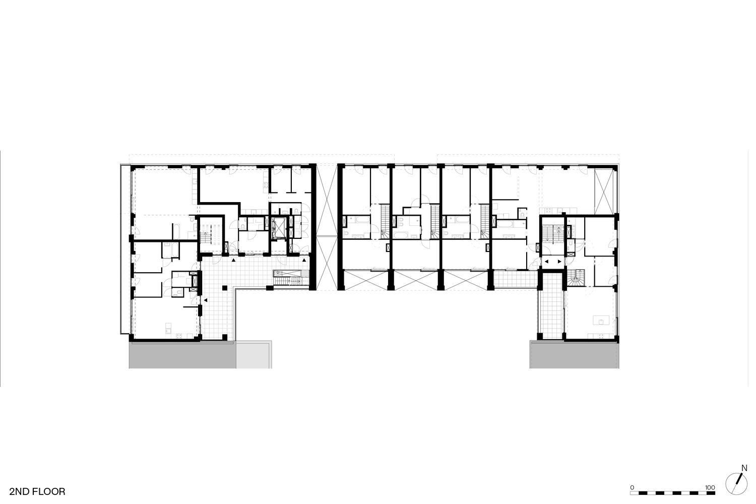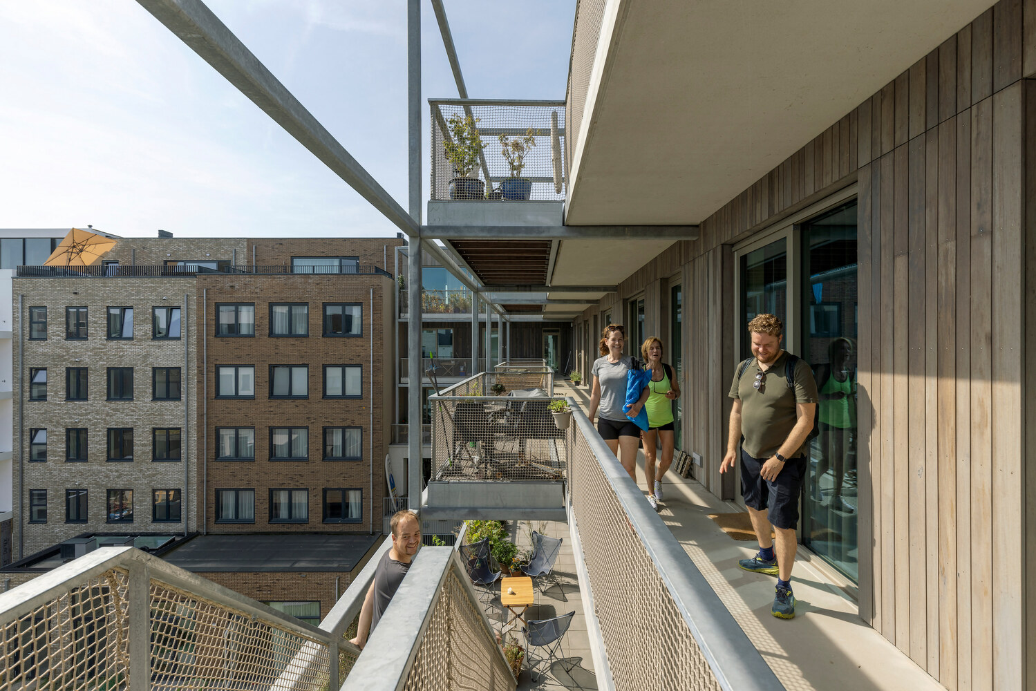 스페이스앤매터와 커먼시티는 8차례에 걸친 워크숍을 통해 wij_land의 미래 거주자들과 함께 야망, 유형학, 순환, 지속가능성에 대해 논의했습니다. 공동 창작에서는 프라이버시와 집단성 사이의 적절한 균형을 유지하면서 독특한 형태의 공동 거주를 설계했습니다. 뒤쪽 퍼걸러의 넓은 발코니를 따라 이어지는 동선은 비공식적인 만남을 장려하도록 설계되었으며, 넉넉한 공용 공간은 활기찬 모임으로 붐빕니다. translate by DeepL