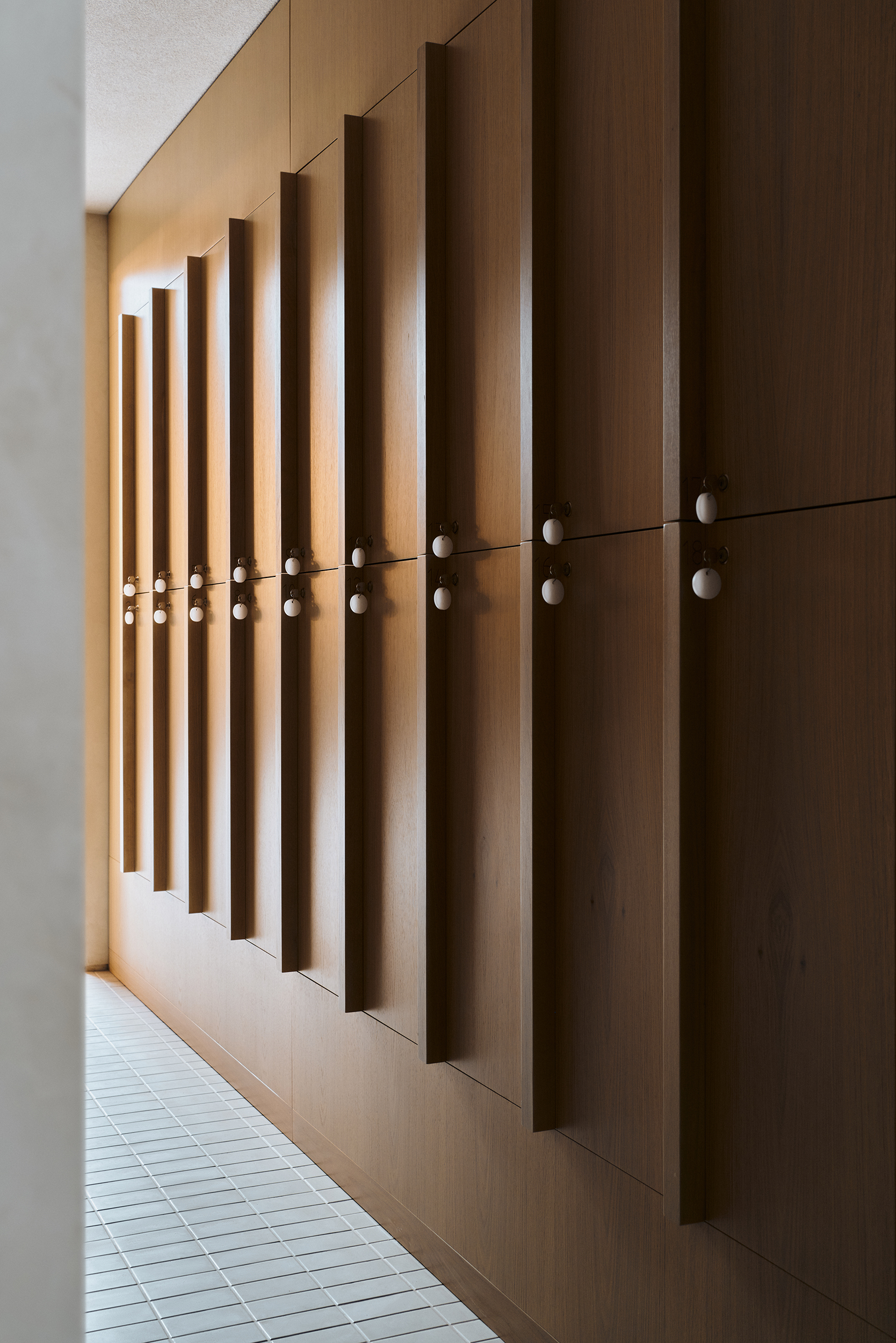 In their quest to instill an atmosphere of peace and tranquility, a subdued color palette was carefully curated, featuring shades ranging from delicate whites to warm, sandy greys. Hand applied plaster graces the walls and doors, sandblasted glass adds a touch of sophistication, while whitewashed oak flooring and bespoke furniture exude a dignified yet unobtrusive natural charm. The deliberate avoidance of high contrasts in favor of subtle accents, reminiscent of interior jewelry, creates a sense of understated elegance. Amber-like details, crafted from golden brown resin, can be found throughout the estate, particularly in apartment and floor numbering, serving as a subtle homage to Gdańsk’s historical renown for amber craftsmanship.