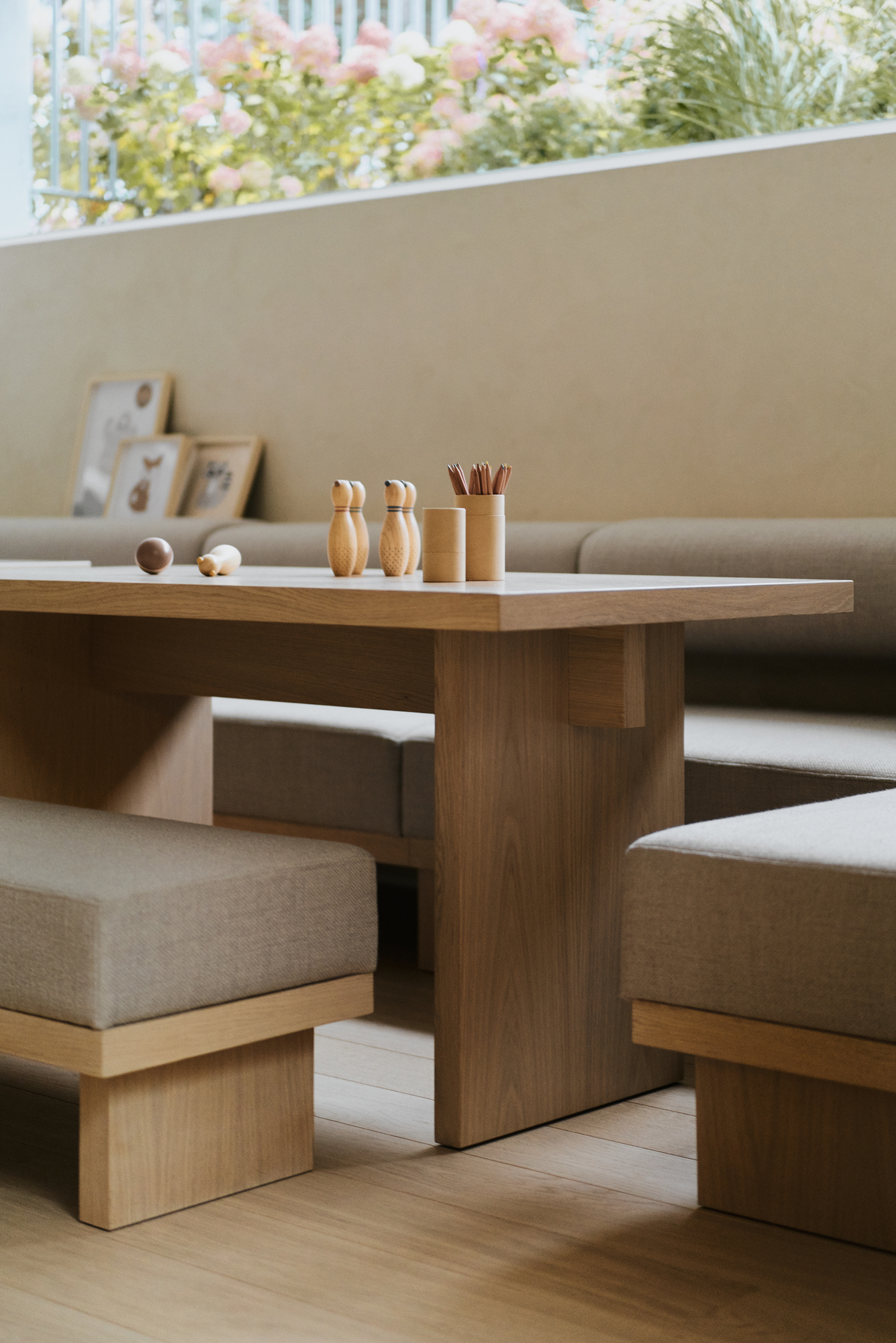 The design emphasizes open, well lit spaces adorned with natural materials, each celebrated for its inherent qualities and unadulterated character. Notably, the exposed board-formed concrete construction walls, cast in accordance with their precise specifications, create a striking contrast with the more subdued shapes and textures, resulting in captivating tensions throughout the property. This unwavering commitment to authenticity is evident in the thoughtful layout of the communal pavilion, where different spaces seamlessly flow into one another, ensuring a serene experience and visual harmony.
