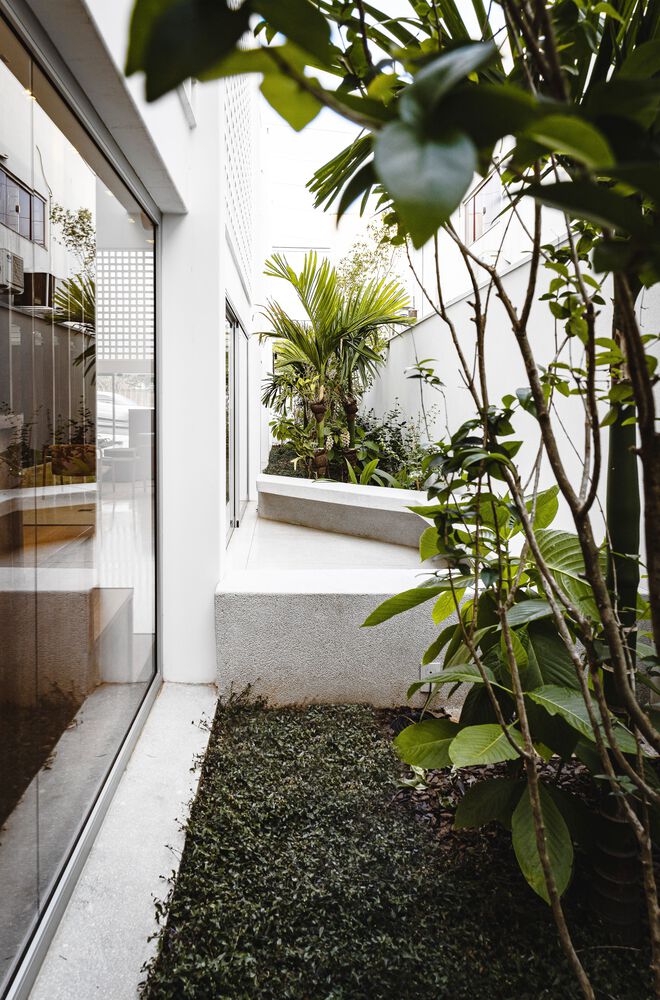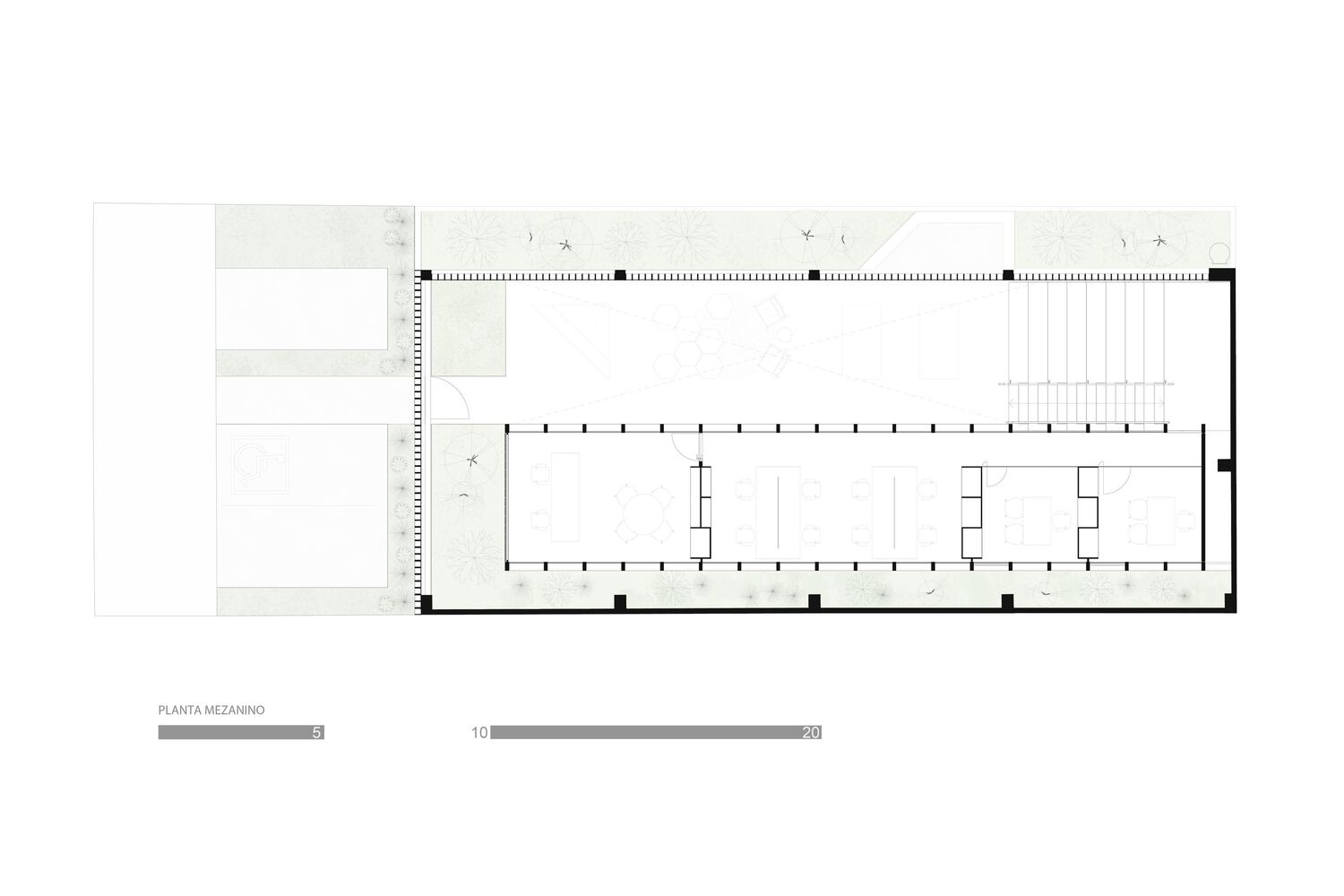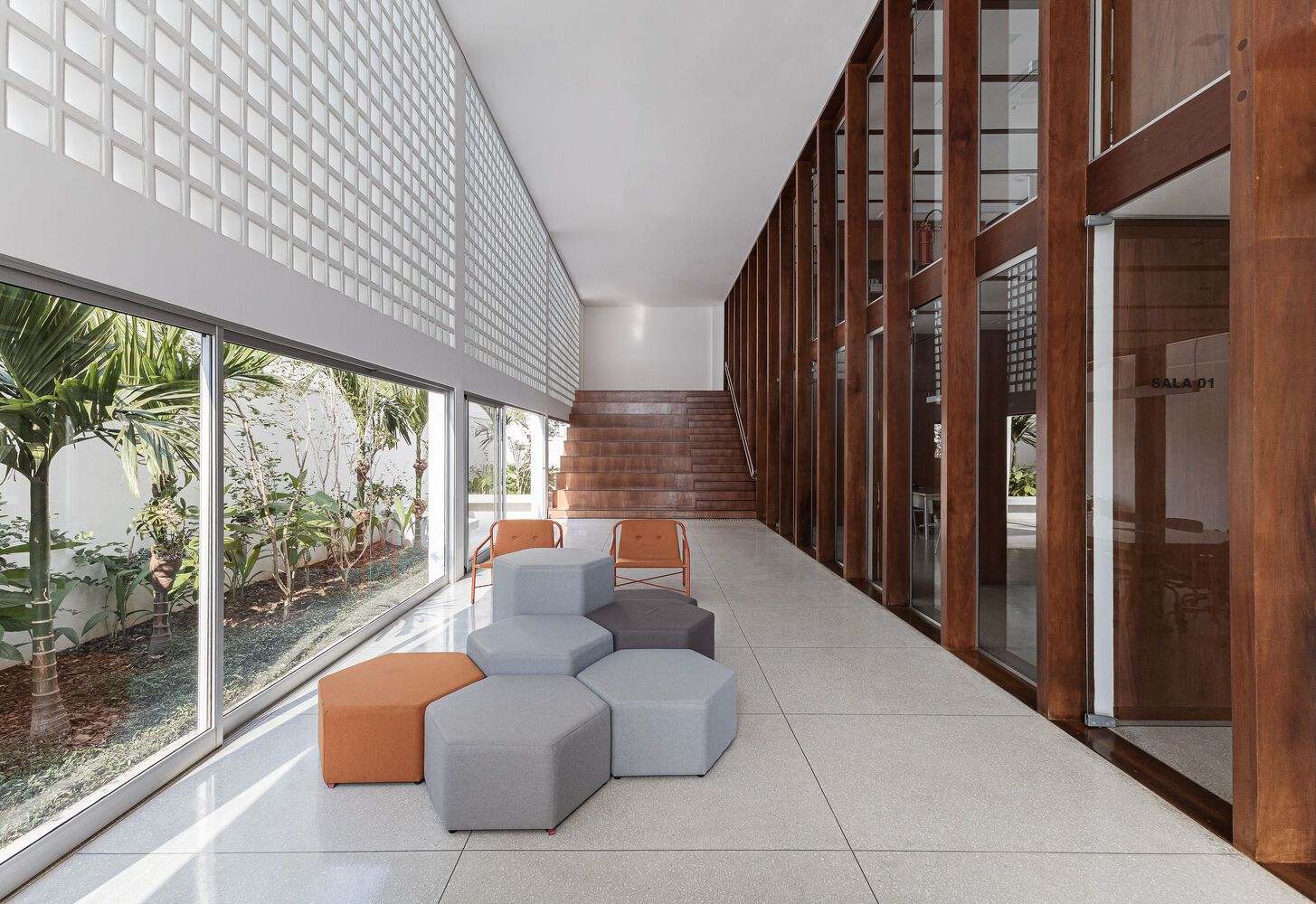 The strategy adopted for this project is to improve the functionality of the existing space, integrating it efficiently with the outdoor environment. The introduction of the internal box, with its longitudinal arrangement, redefines the perception of space, transforming it into an inviting place for interactions and meetings. The choice of transparent and light-permeable materials is one of the main pillars of this architectural concept, aiming to create a bright and airy internal atmosphere. The synergy between the translucent tiles on the roof and the cobogó panels not only allows for abundant natural lighting, but also establishes a fluid relationship between internal and external spaces, strengthening the connection with the surrounding gardens.
