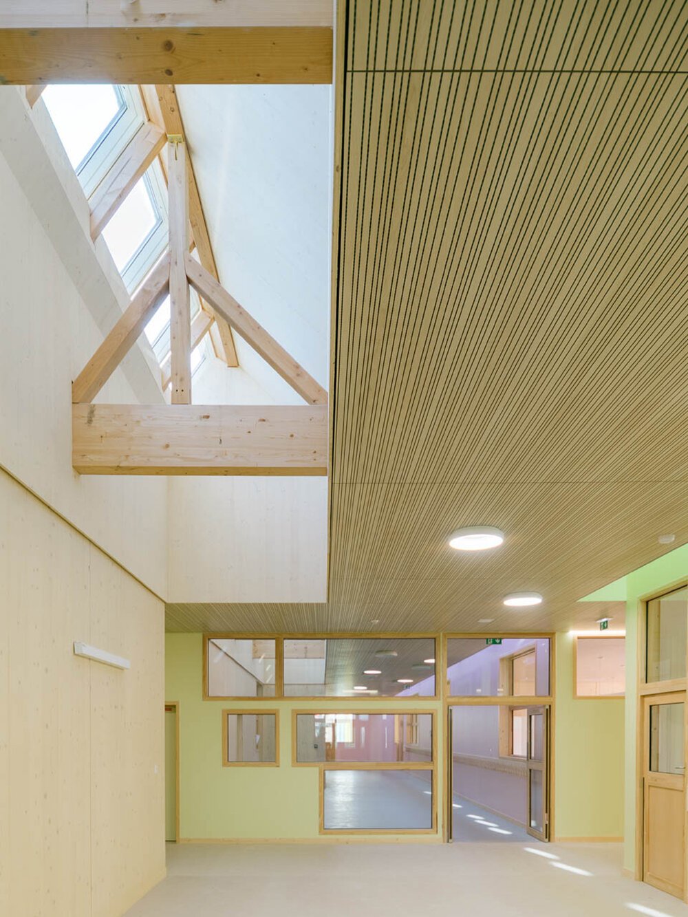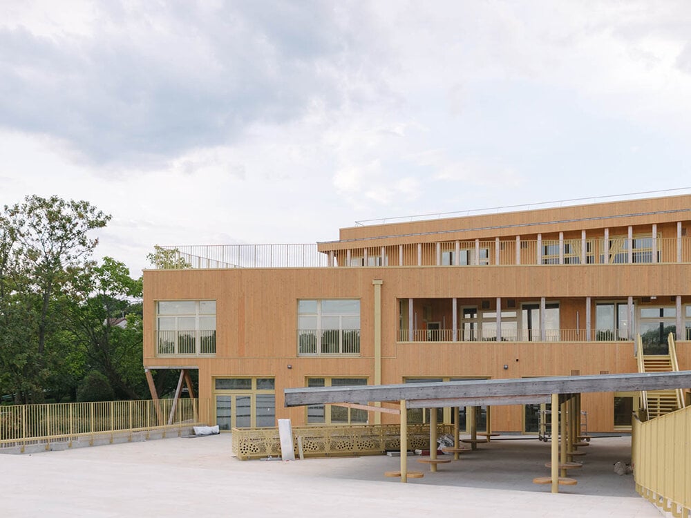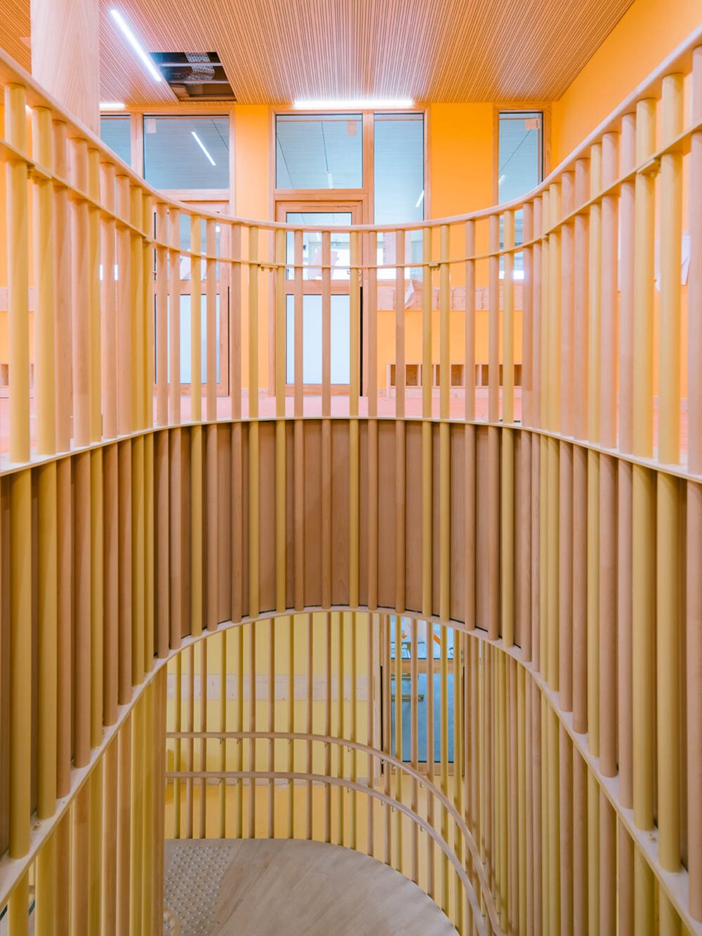 Grenoble-based firm r2k architecte presents Oiseau Lyre, a school with Nordic inspiration in Noisy-le Grand, France. Anchored on a plot with eight meters of elevation, the school faces North toward the Marne and explores a new pedagogical model of Finnish design, offering a diversity of shared spaces. The compact building of 50mx100m is set on four levels, maintaining a low height profile about neighboring pavilions. Like a Palladian villa, functions are embedded in the core of the building, in an area filled with natural light and the social vibrancy of the school. With Oiseau Lyre, r2k architecte brings the city’s environmental and educational ambitions to realization by shaping a positive energy building made of wood. Based on recent cognitive research, it provides a framework for active pedagogies. In its spatial proposals, the school’s design incorporates the latest know-how of Nordic schools, and those of the Quebec Lab school, models which r2k architects Véronique Klimine (France) and Olavi Koponen (Finland) visited.