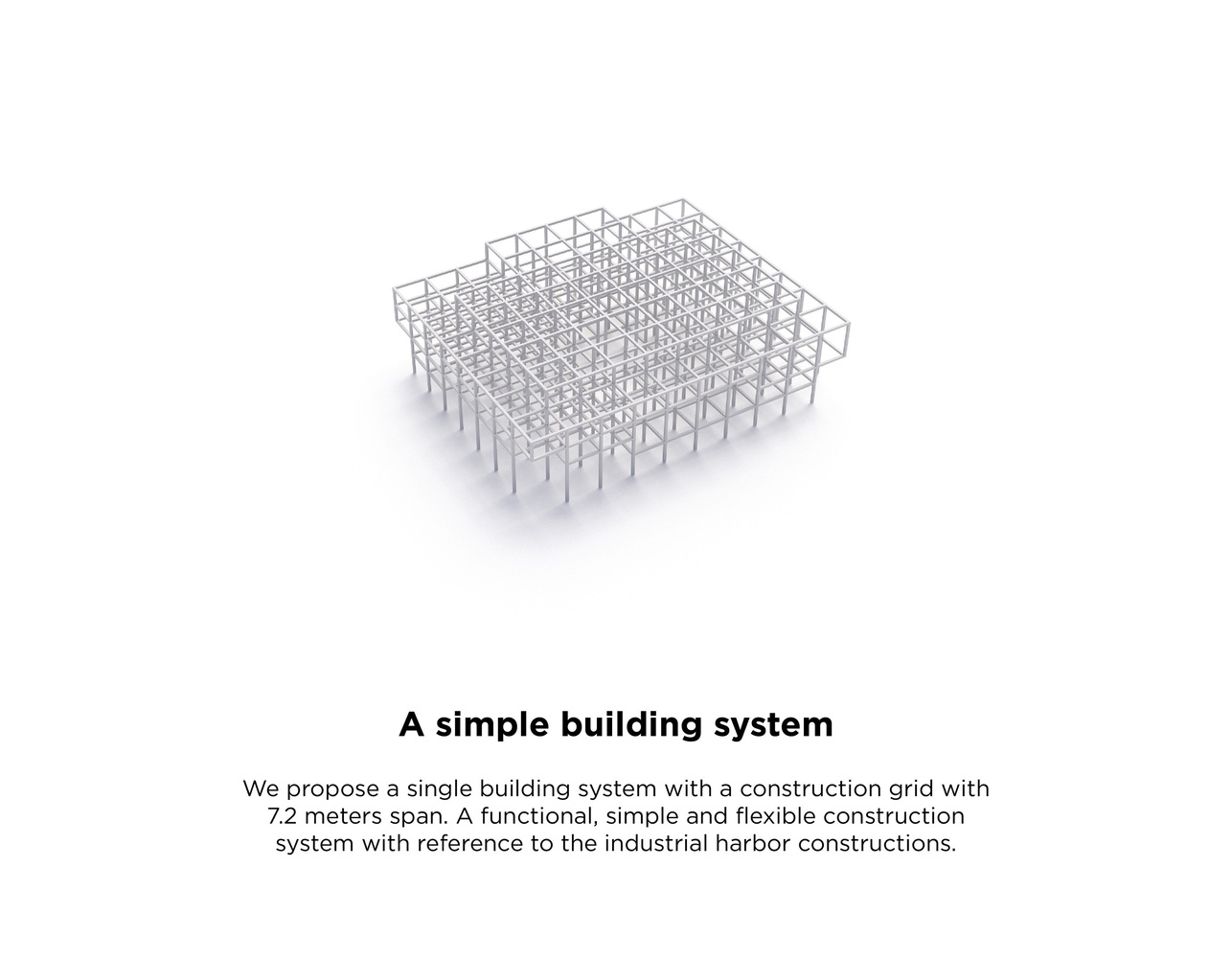 The architectural design is based on a modular construction grid that maximizes openness and flexibility in the physical framework of education. The construction is flexible because it allows for reconfiguration of the layouts for workshops and teaching rooms, without disturbing the load bearing structure and logistics. The design provides a good spatial range, which can function for both larger classrooms as well as workshops, but can also be subdivided into smaller units for offices.