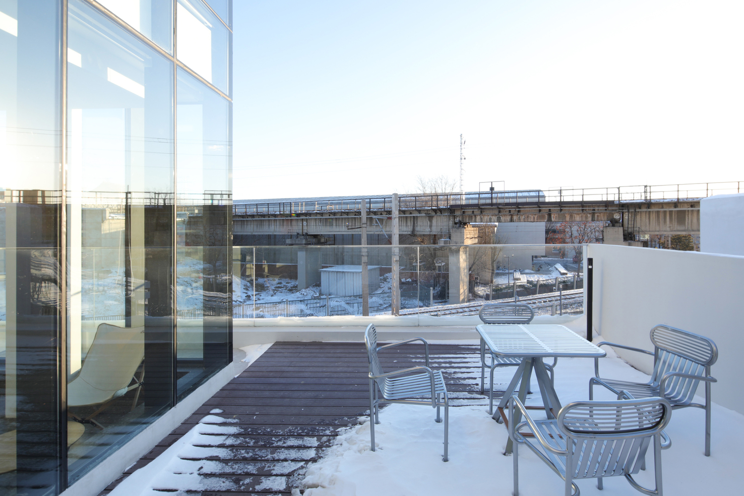 When CPLUS took over the project, the entire building was in a rough state. According to the characteristics of the site and the needs of the client, the architects first made partial adjustments to the interface connecting the indoor and outdoor spaces. After renovation, a new open-ceilinged multi functional area was added to the east side. The lower part of its facade was changed from a solid wall to openings, while the original window above was closed. This change in elevation ensures an abundance of light in the interior and a closer visual connection to the garden view. The low wall of the south-facing outdoor terrace has been knocked down and replaced with glass panels, allowing for an open and continuous view of the passing train and a moment of leisure.