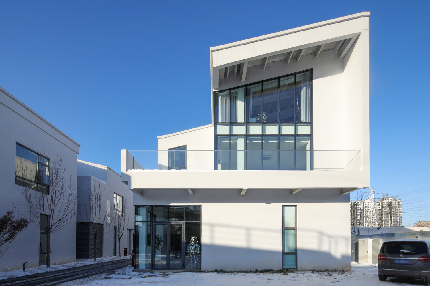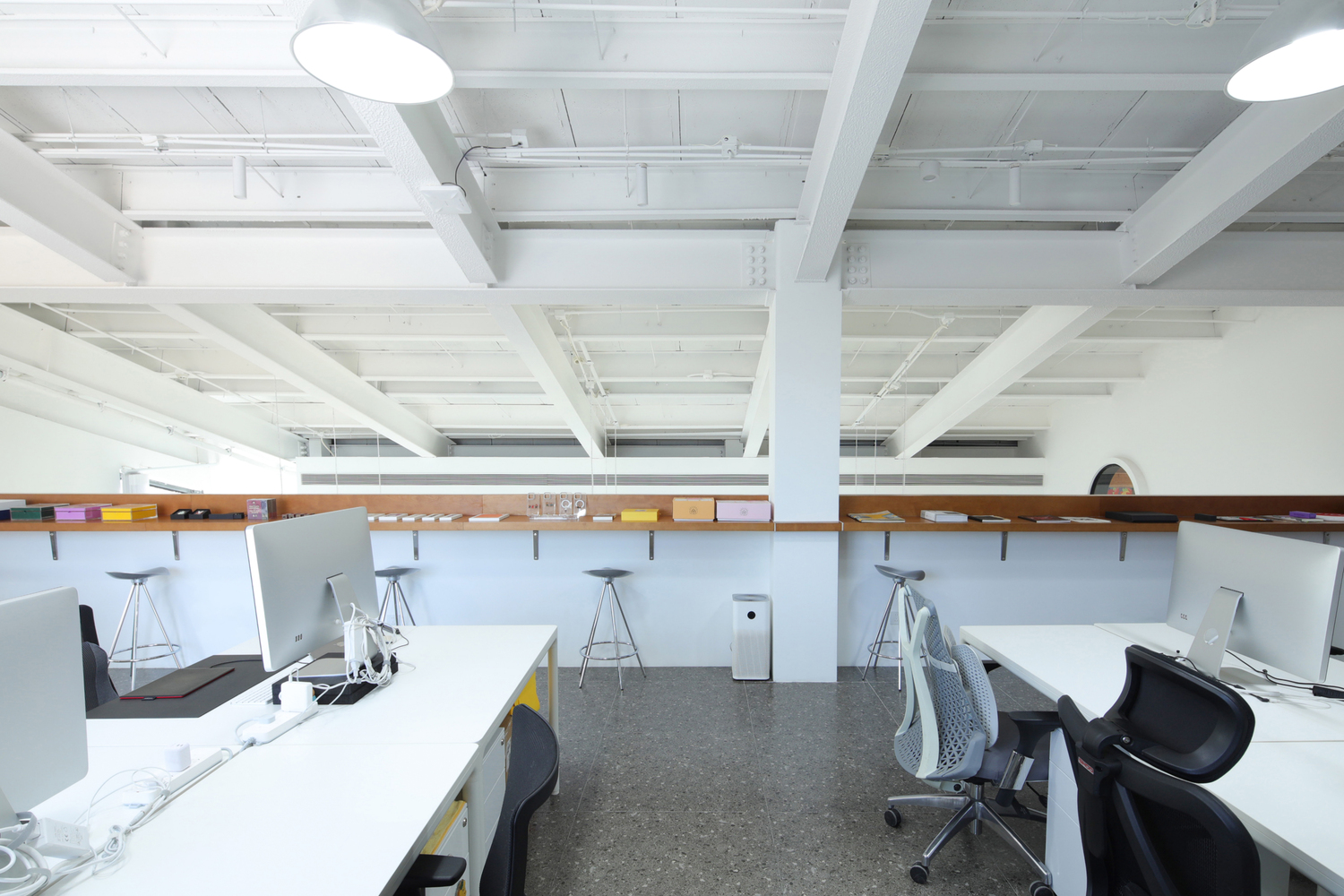 The H9 Building of FUNS iTown in Gaobeidian, Beijing, co used by two creative organizations, Weestar Studio and XINGHUI CREATIONS. The shared space on the first floor serves for exhibitions and events, while the upper floors accommodate the offices of the two organizations. The south side of the building is crossed by several freight tracks, and trains passing by from time to time carry the historical memory of the park. Inspired by the "Continuous Landscape", the design attempts to break down the physical boundaries of the office space, combining the traces of industrial civilization with the busy daily work scene to create an open office environment that can stimulate imagination and flexible public spaces.