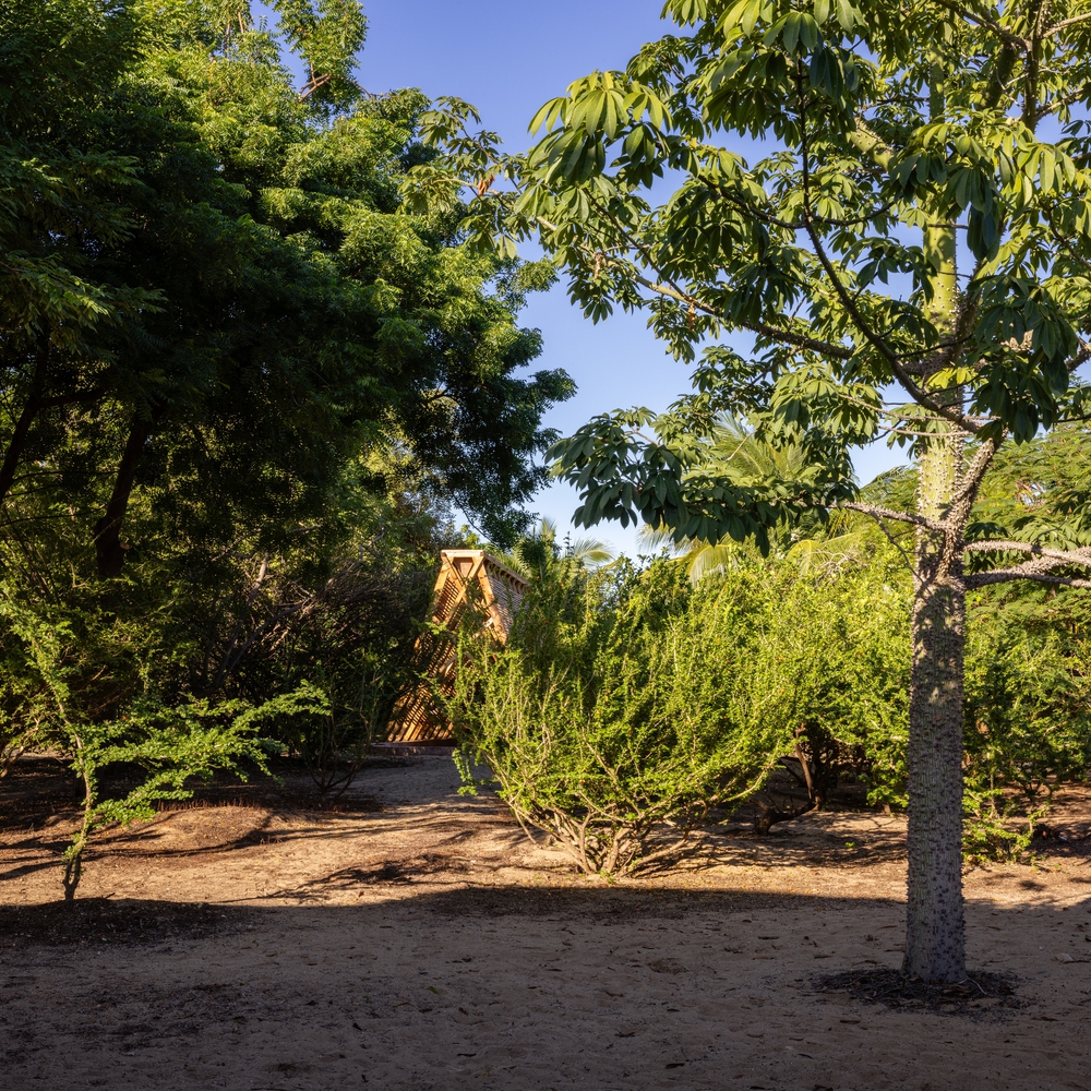 The Orchid Pavilion, designed for Casa Wabi and inaugurated on February 3rd, 2024, is located on the outskirts of Puerto Escondido, between the sea and the mountains. It is a wooden structure, permanent, sustainable, and lightweight, dedicated to the conservation of orchids in the Oaxaca region, which highlights the strong relationship between the biological and cultural diversity of the landscape.