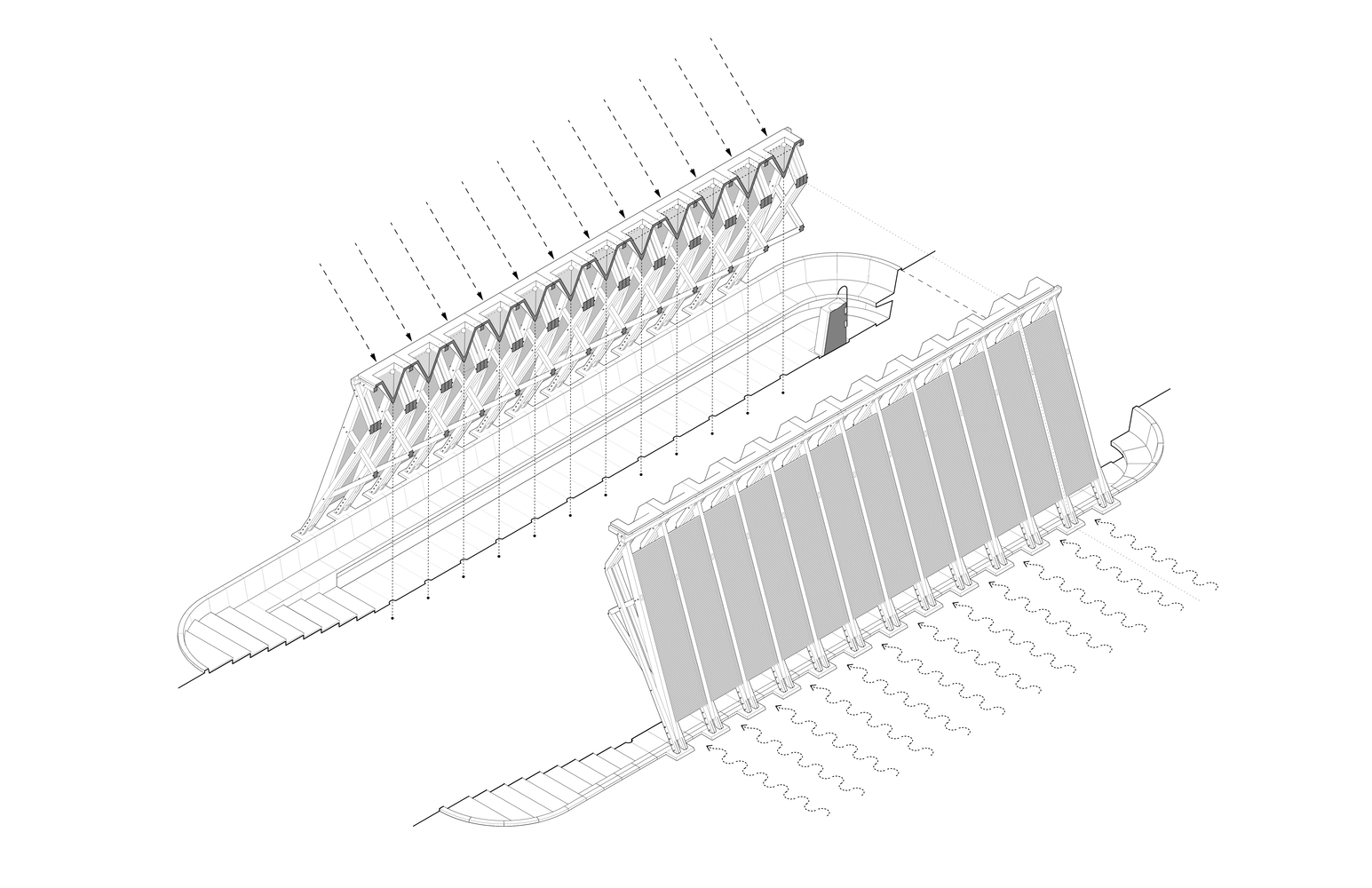 As we approached the design of the Orchid Pavilion at Casa Wabi, our research pointed toward some clear technical features, components, and facts. It became evident that in order to grow, reproduce, and collect orchids, we needed to create the right environment for them to thrive: humid, partially shaded, and well-ventilated.