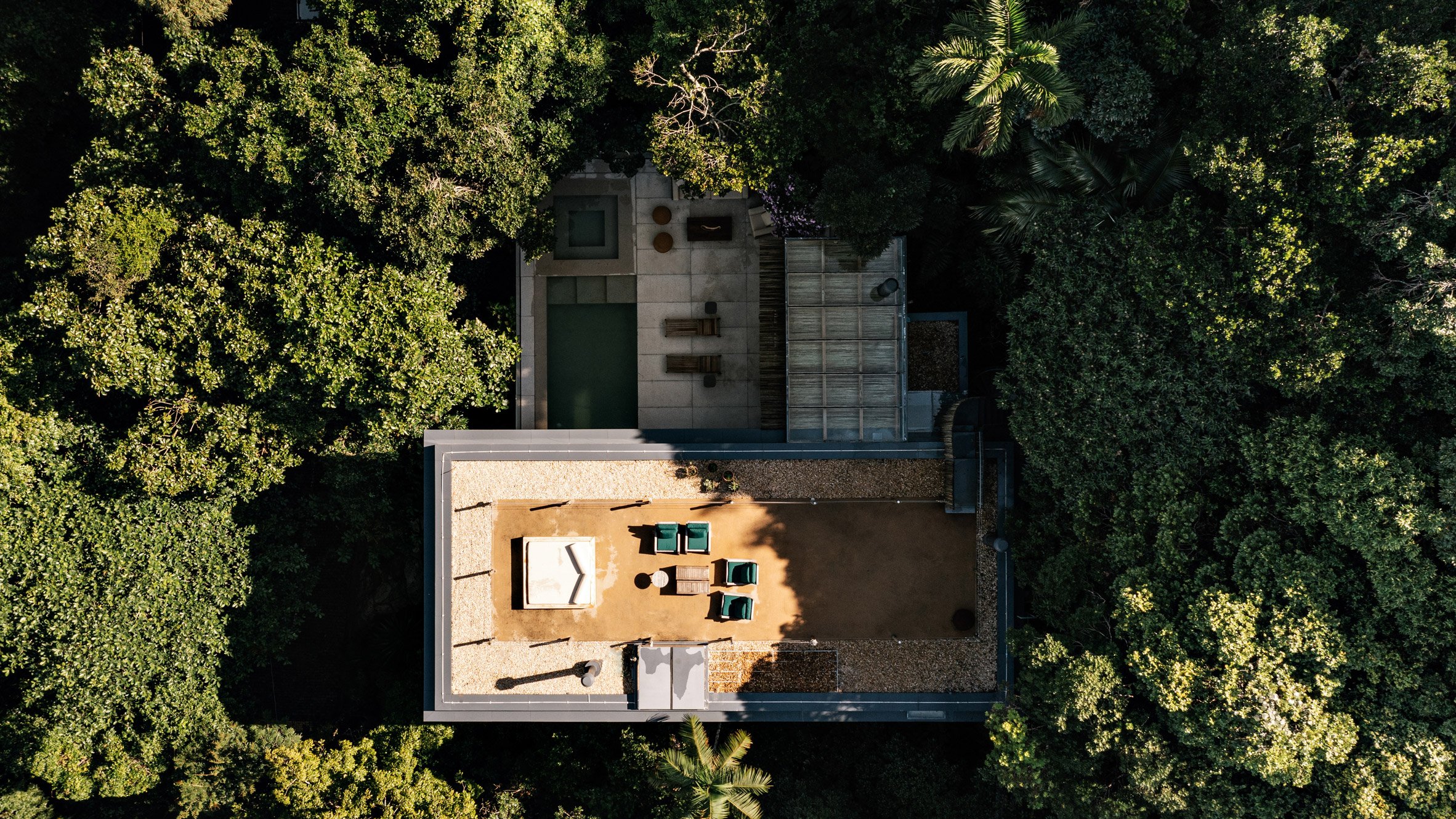 "An invitation to immersion, the proposal takes advantage of the double layer that surrounds the residence, from the palette of natural materials applied to the base, to the canopy of trees – alluding to a treehouse –suggesting a shelter," the team told Dezeen.