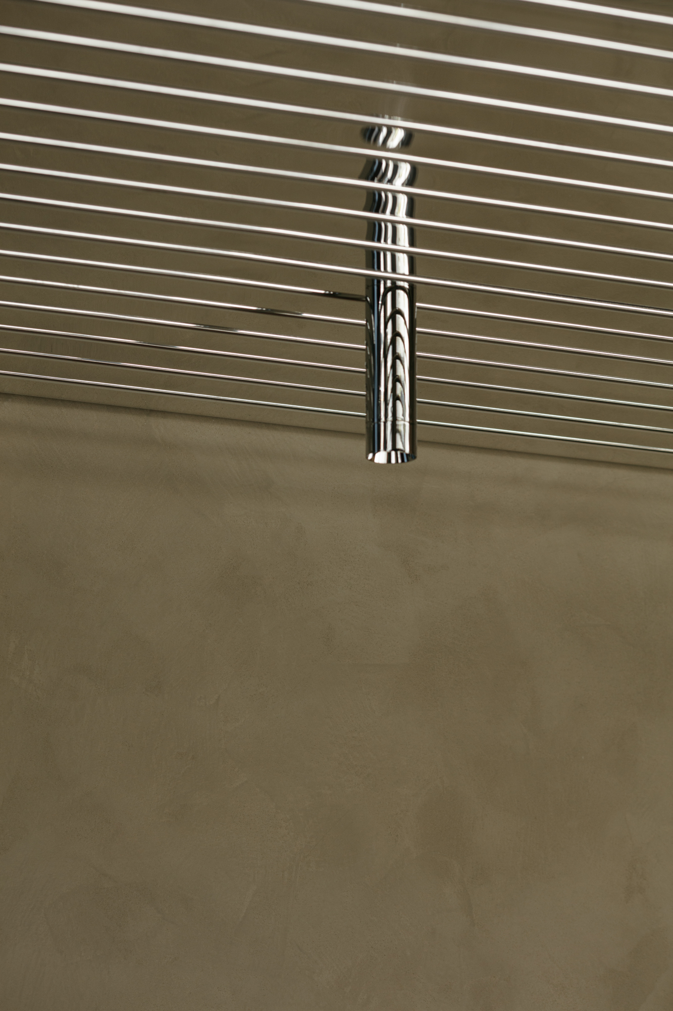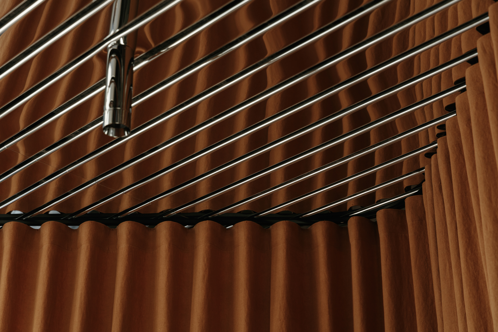 An uncommon encounter indeed, even the first sliver previewed upon entry divulges the immersive spatial identity that awaits. Journeying through the threshold fringed by robust brick walls reveals falling curtains that shroud private seating, as sightlines dash across sleek and organic surfaces to be reflected back by a chrome mirrored ceiling. A demure gesture to the iconic disco ball, Dolly’s lustrous roof foretells the dynamic nature of the bar that entices exploration from day to night.