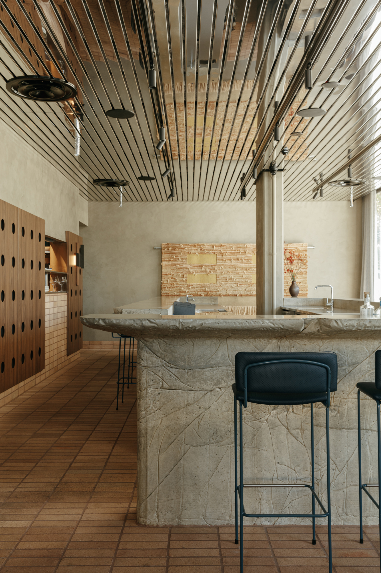 제네신 스튜디오(Genesin Studio)가 만든 돌리는 대담한 개성으로 고객들의 시선을 사로잡는 영향력 있는 와인 바와 레스토랑입니다. 언리의 수많은 멋진 워터링 홀과 다이닝 명소를 돋보이게 하는 돌리는 애들레이드 교외에서 특별한 경험을 선사합니다. 세련된 연회와 신나는 심야 디스코에 모두 어울리는 색다른 인테리어를 자랑하는 이곳은 포근한 부드러움과 대담한 드라마가 조화를 이루도록 훌륭하게 꾸며져 있습니다. 1층 주택의 유리로 된 모서리 전면을 감싸고 있는 이 바는 언리 로드에 있는 번화한 아파트 블록의 북쪽 기슭에 자리 잡고 있어 주민과 행인들이 내부의 흥미로운 장면을 엿볼 수 있습니다. 광택이 나고 윤기 나는 평면과 신기하게 구겨진 콘크리트 바가 아름답게 조화를 이루고 있으며, 아늑한 부스 좌석은 유리창으로 둘러싸여 있습니다. "빈 캔버스처럼 처음부터 다시 시작"했다고 말하는 라이언 제네신 스튜디오 디렉터는 자신과 그의 팀이 궁극적으로 "잔혹주의와 미래주의 디자인 미학을 반영한 현장의 뼈대에서 영감을 얻었다고 밝혔습니다." 제네신 스튜디오의 디렉터인 라이언 제네신은 부스 디자인에 대한 영감을 얻게 되었다고 말합니다. 이는 디자인 프로세스와 재료 선택에 영향을 미치기 시작했고, 이 지역을 위한 새로운 무언가를 만들기 위해 디사인 브리프에 반영되었습니다."translate by DeepL