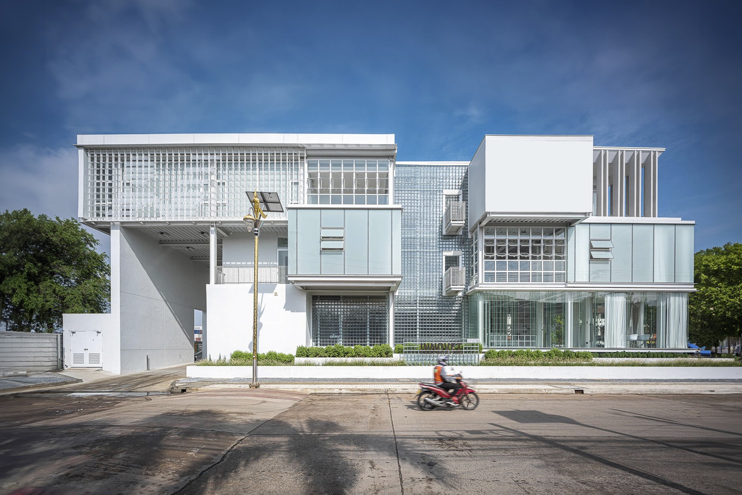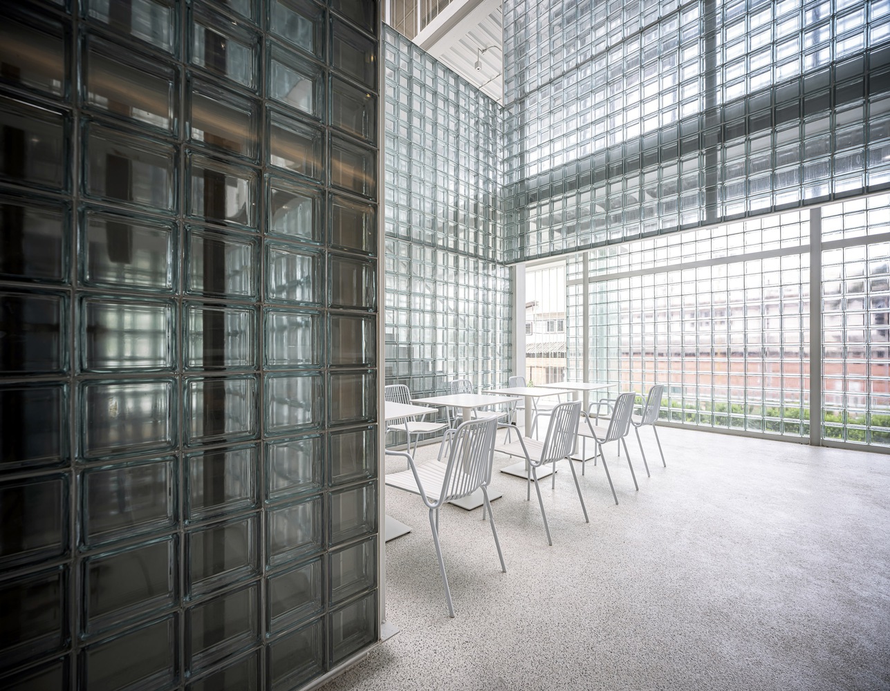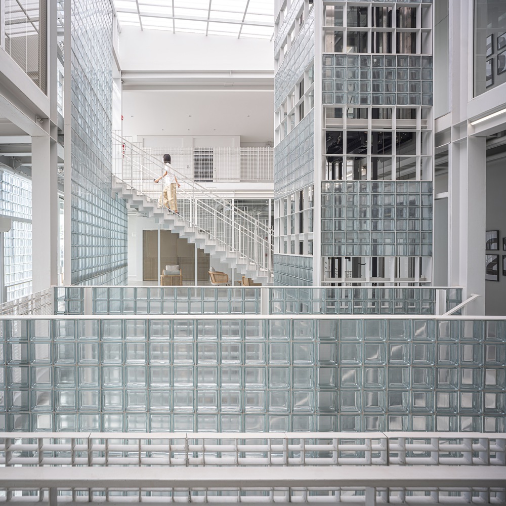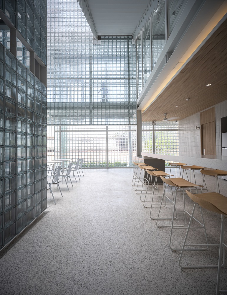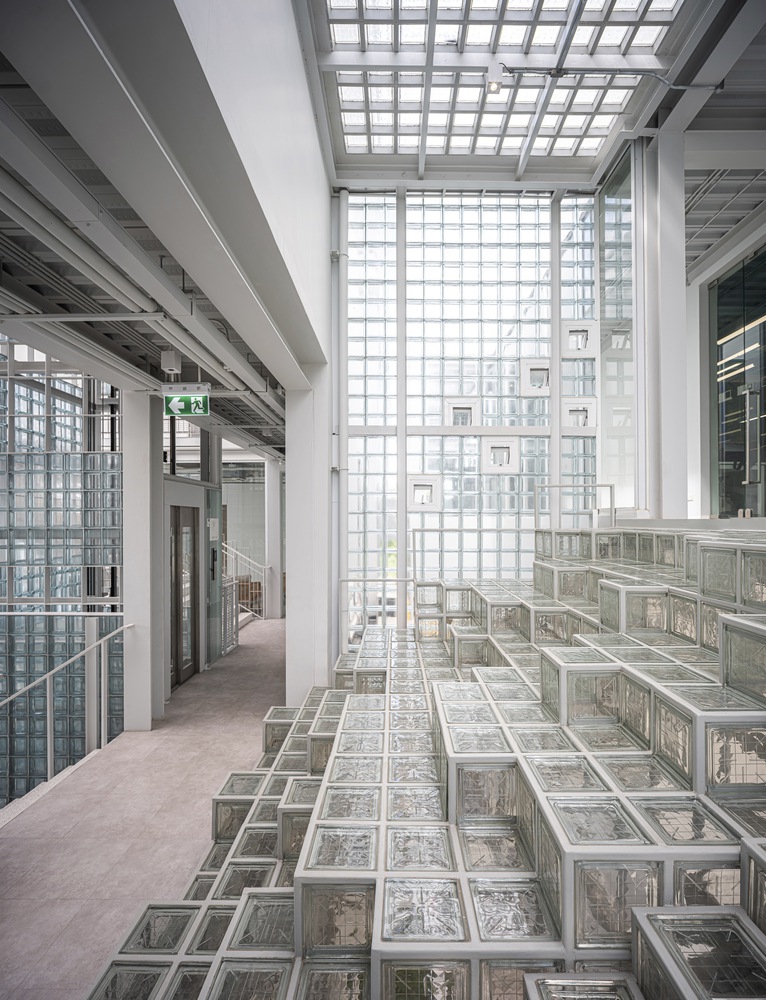 The heart of the design lies in the use of glass blocks throughout the building. This material not only reflects the business identity, focusing on distributing vaccines and livestock supplements for the agricultural sector, but also emphasizes cleanliness and hygiene. The design philosophy of a clean, minimalist aesthetic is further accentuated by the abundant use of natural light, providing a sense of openness and privacy for passersby. It serves to delineate functional boundaries within and outside the building, creating a harmonious blend in terms of both perspectives and functionality. The circular and translucent nature of glass blocks resonates with the village's surrounding context.