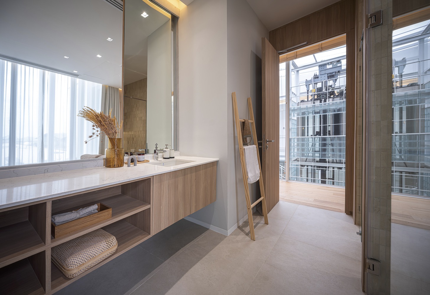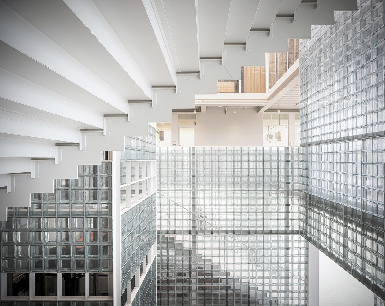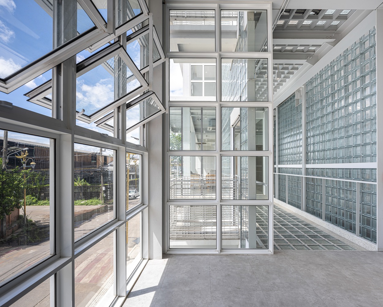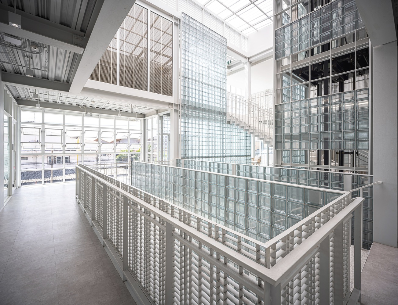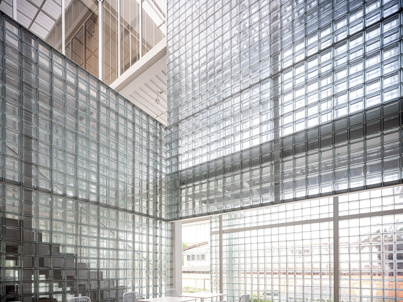 The heart of the design lies in the use of glass blocks throughout the building. This material not only reflects the business identity, focusing on distributing vaccines and livestock supplements for the agricultural sector, but also emphasizes cleanliness and hygiene. The design philosophy of a clean, minimalist aesthetic is further accentuated by the abundant use of natural light, providing a sense of openness and privacy for passersby. It serves to delineate functional boundaries within and outside the building, creating a harmonious blend in terms of both perspectives and functionality. The circular and translucent nature of glass blocks resonates with the village's surrounding context.