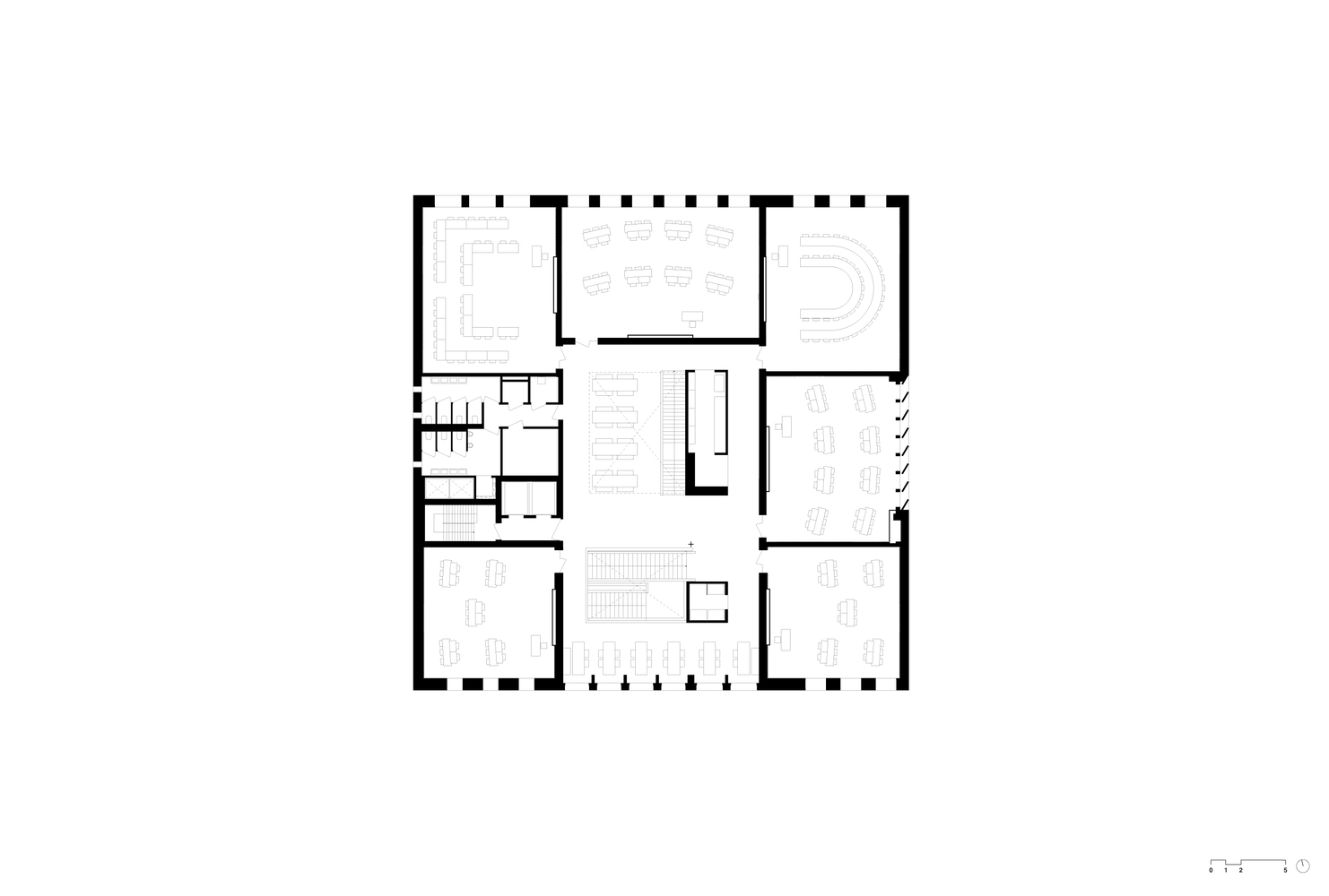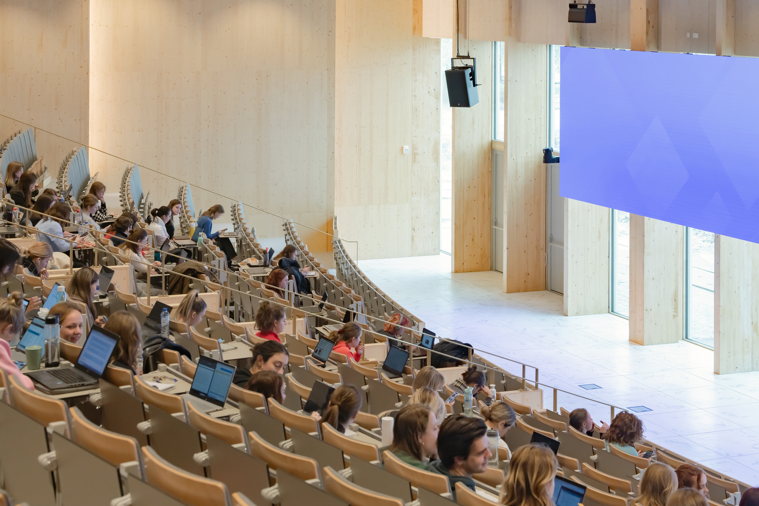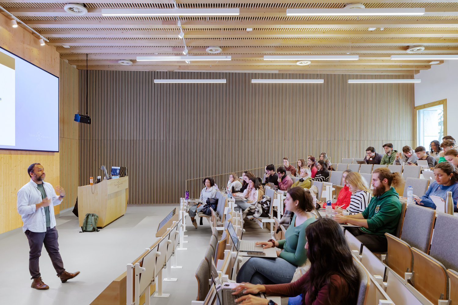 Powerhouse Company took the Cobbenhagen Building as a starting point for spatial qualities but brought the design into the 21st century by opting for a palette of natural, circular materials such as wood, terrazzo, and plasterwork. These materials are prominently featured and contribute to a serene atmosphere, from the spacious lecture halls to the intimate alcoves by the windows. Additionally, wooden furniture has been used to enhance the tranquil study spaces.