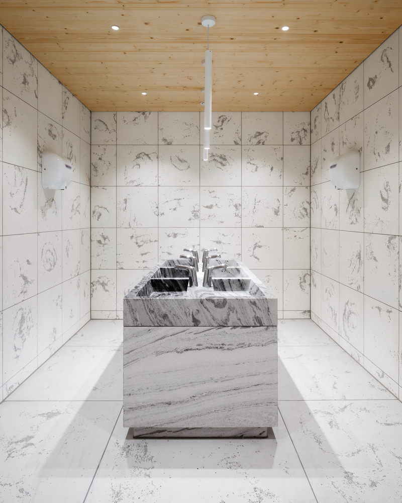 파워하우스 컴퍼니가 설계한 마르가 클롬페 빌딩은 유럽 최초로 전체가 원목으로 건축된 대학 건물입니다. 에너지 중립에 가까운 이 새로운 복합 건물은 숲이 우거진 틸부르크 대학교 캠퍼스 내 33×33미터 크기의 부지에 자리하고 있습니다. 이 건물에는 로비, 강당 1개, 강의실 13개, 약 1,000명의 학생을 위한 자율 학습 공간이 마련되어 있습니다. 이 독특한 건축물은 캠퍼스의 기념비적인 코벤하겐 빌딩에 경의를 표하는 동시에 유럽 대학 캠퍼스의 지속 가능한 야망에 대한 모델 역할을 합니다. 마르가 클롬페 빌딩의 디자인은 틸뷔르흐 대학 캠퍼스의 모더니스트 건축물과 완벽하게 통합됩니다. 이 건물은 목조 구조, 벽, 바닥, 계단, 프레임 및 마감재의 재생 가능한 특성을 통해 순환적인 야망을 반영하고 있습니다. 빔으로 보강된 목재 골조 바닥 CTL 바닥을 활용하여 프로그램에 필요한 높은 음향 요구 사항을 충족하는 넓은 자유 스팬을 가능하게 하는 독특한 건식 건축 시스템이 구현되었습니다. 깊은 노출이 특징인 포르투갈산 천연석 외관은 1962년 Jos Bedaux의 상징적인 코벤하겐 빌딩을 직접적으로 참조했습니다. 수명이 길고 분해가 가능한 자연석은 원형에 대한 야망을 확인시켜 줍니다. 돌의 볼륨감이 주변 건축물과 조화를 이루며 울창한 숲이 우거진 주변 환경과 흥미로운 대조를 이룹니다. 모든 것을 아우르는 이 건물은 캠퍼스에 통합되어 있으며 역에서 입구를 표시합니다. translate by DeepL
