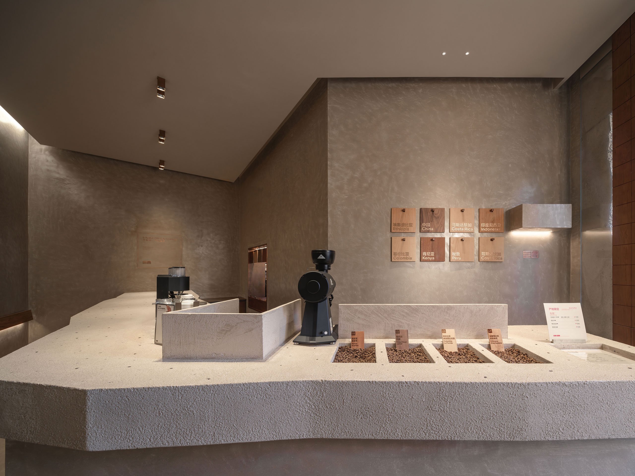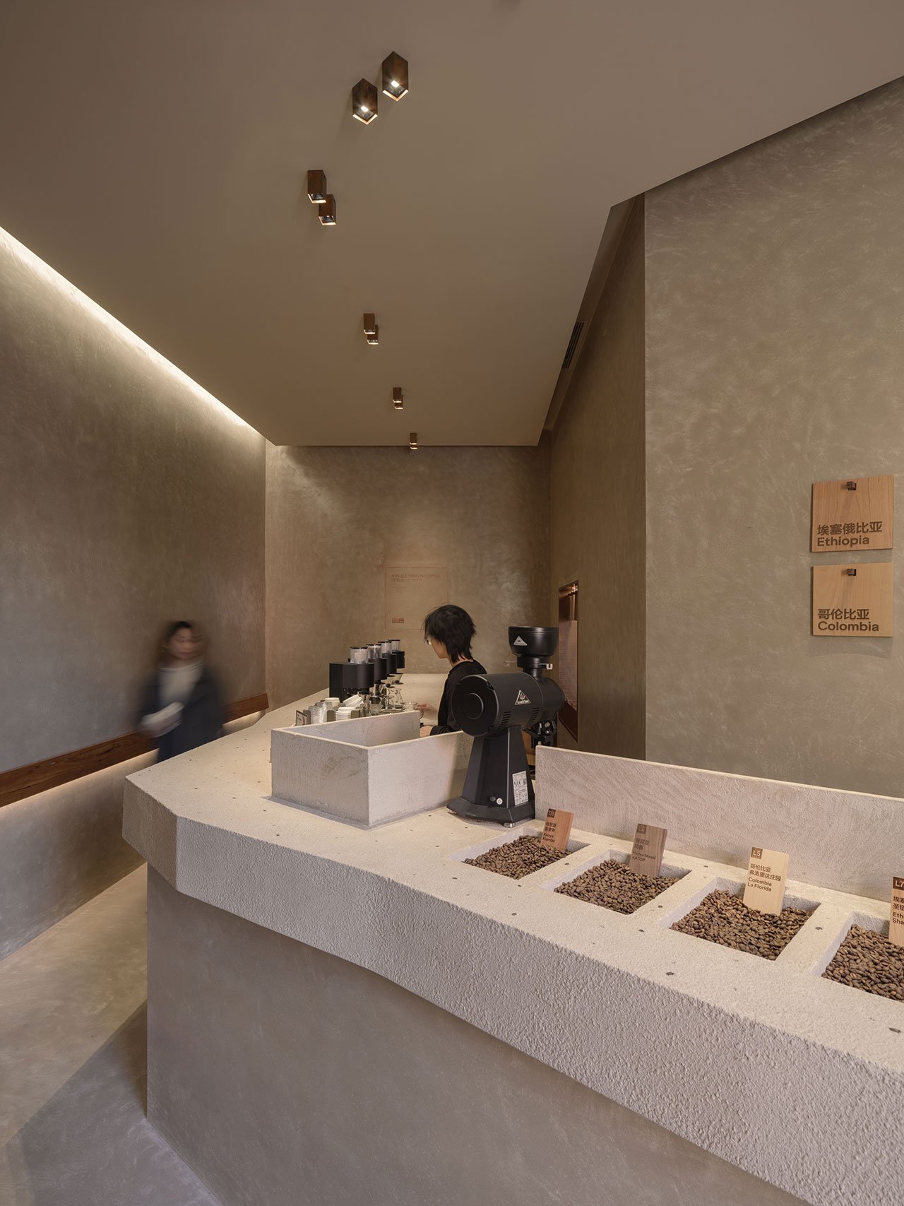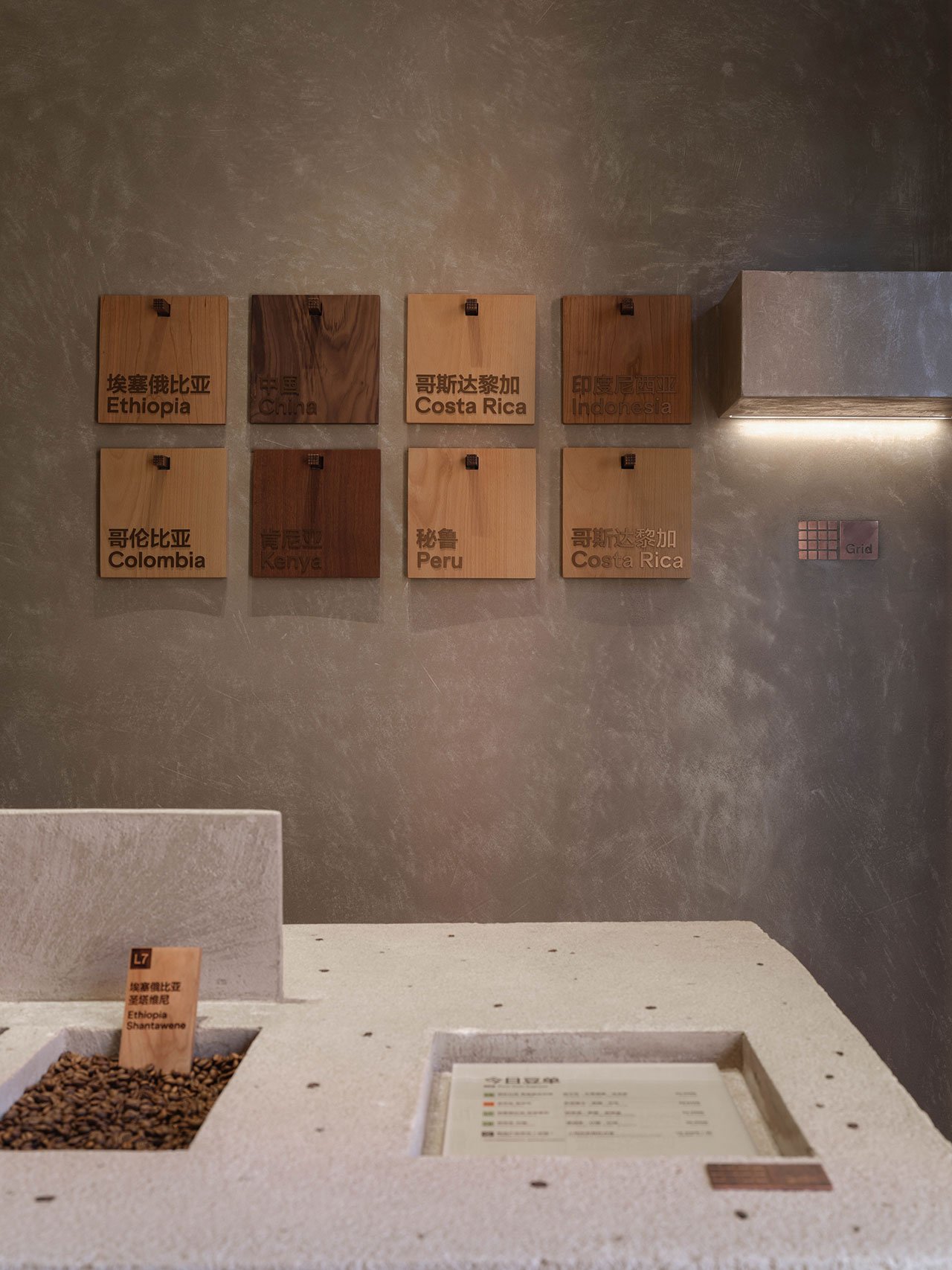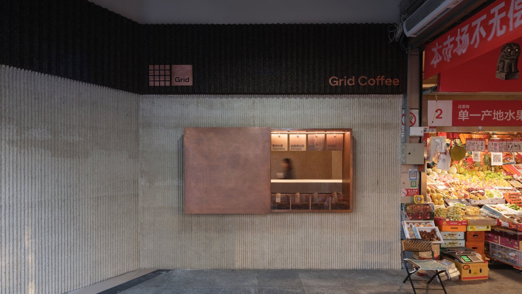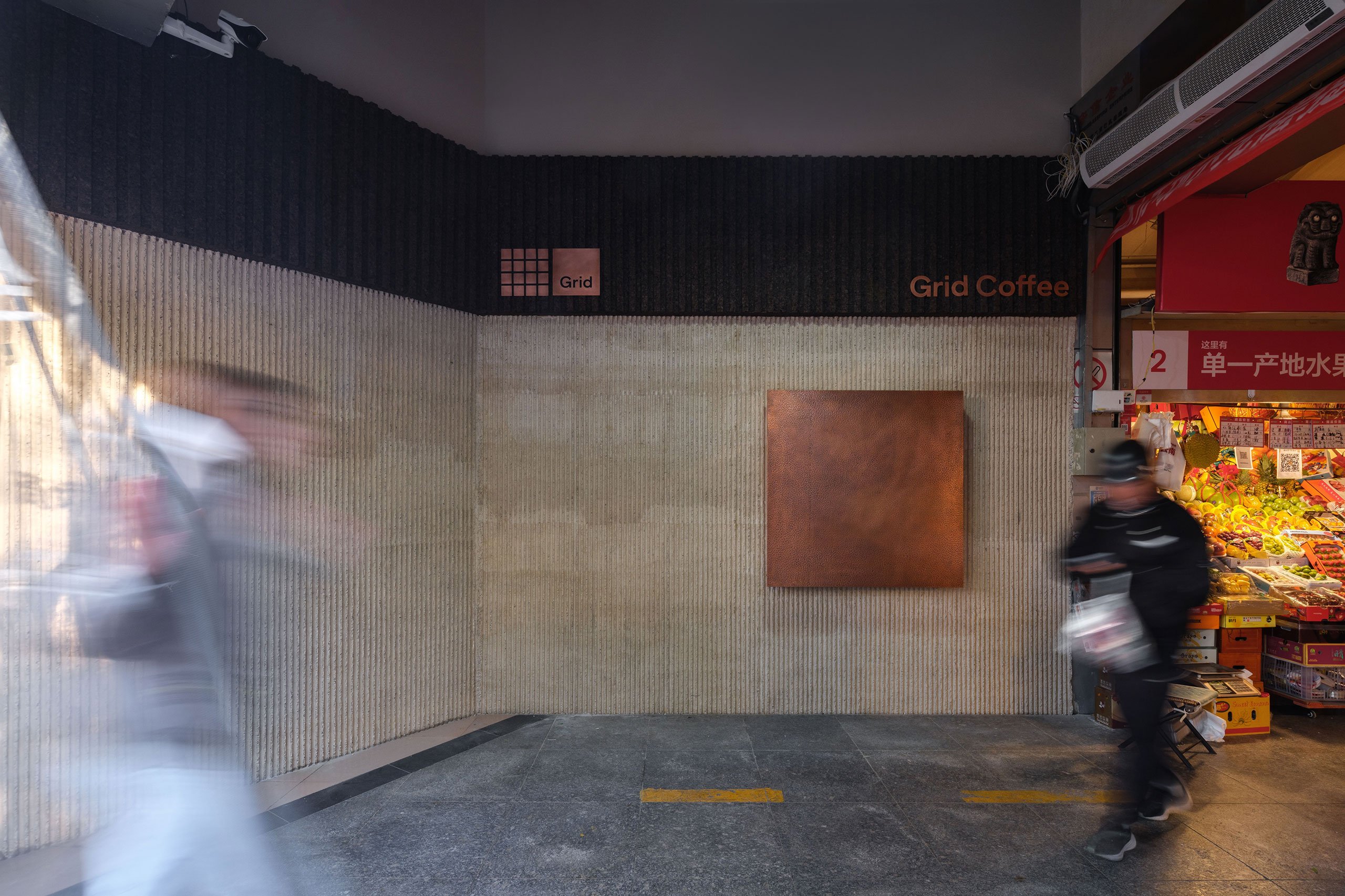 베이징의 스페셜티 커피 체인점 그리드 커피의 의뢰를 받아 최신 전초기지를 설계한 베이징의 일본 사무소 B.L.U.E. 건축 스튜디오는 대사관 지구와 호텔이 늘어선 량마강변에 인접해 있어 30년 넘게 현지인과 외국인에게 서비스를 제공해 온 인기 시장인 산원리 푸드 마켓의 일부인 25평의 좁은 공간과 까다로운 환경을 극복해야 했죠. 극도로 미니멀한 공간이지만, 시장의 다양한 노점과 신선한 농산물을 반영하는 풍부한 질감과 수공예 디테일 덕분에 다채롭고 혼란스러운 주변 환경과 조화롭게 어우러져 있습니다. 단순함과 기능성이라는 원칙에 따라 콘크리트, 구리, 목재의 원소 팔레트를 사용하여 소박한 건물을 최대한 활용하여 지역 커뮤니티를 보완하고 활성화하는 데 성공한 진정으로 독특한 환경을 만들었습니다. 건축 팀은 좁은 거리의 파사드에 맞서야 하는 상황에서 사람들의 시선을 사로잡을 수 있는 방법을 고안해냈습니다. 조각 같은 콘크리트 포털이 전체 높이의 구리 슬라이딩 도어가 지배하는 대형 유리 입구를 둘러싸고 있습니다. 브랜드 이름에서 영감을 받은 독특한 격자 패턴을 만들기 위해 수작업으로 조립한 175개의 산화 구리 사각형 패치워크로 구성된 이 문은 견고하고 추상적인 형태의 콘크리트 포털과 시각적으로 눈에 띄는 대조를 이룹니다. translate by DeepL