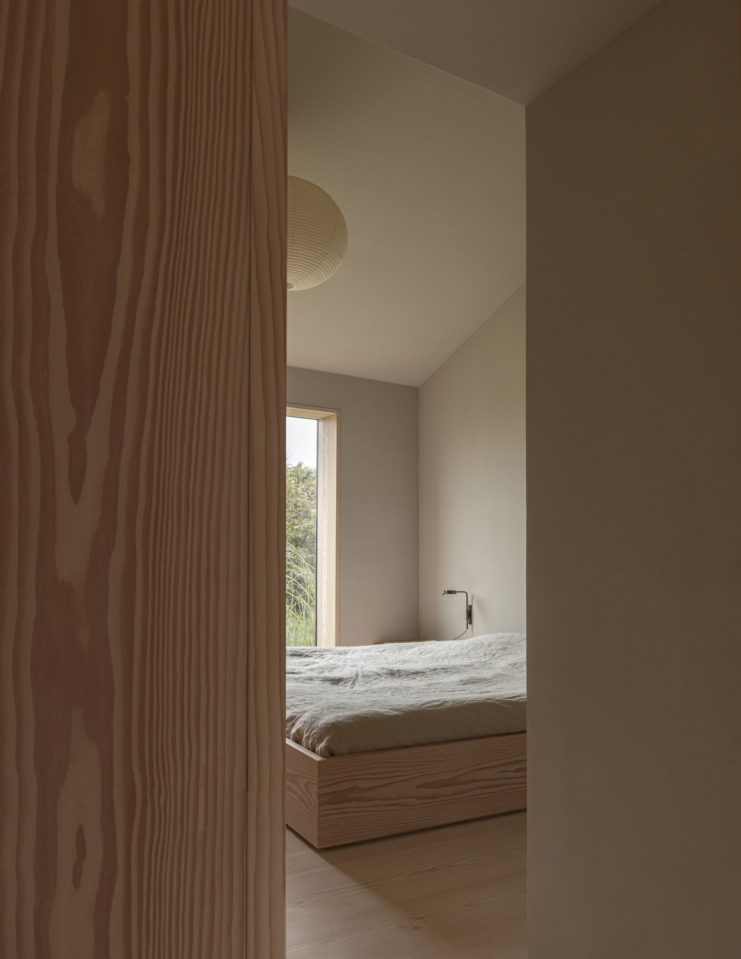 Heatherhill Beach House is a minimalist residence located in Jutland, Denmark, designed by Norm Architects. Perched among picturesque hills overlooking the beach and Kattegat, the Heatherhill Beach House seamlessly blends Danish architectural traditions with modern innovation. This holiday home champions simplicity and embraces nature, creating a tranquil retreat that harmonizes with its surroundings. Upon entering, visitors are immediately greeted by a calming atmosphere. Every aspect of the design aims to enhance the sense of arrival, integrating effortlessly with the natural beauty outside. The project reimagines the traditional Danish summerhouse within a wild landscape, evident in the use of wood as the primary material and the strategic placement of the house to minimize environmental impact while maximizing views.