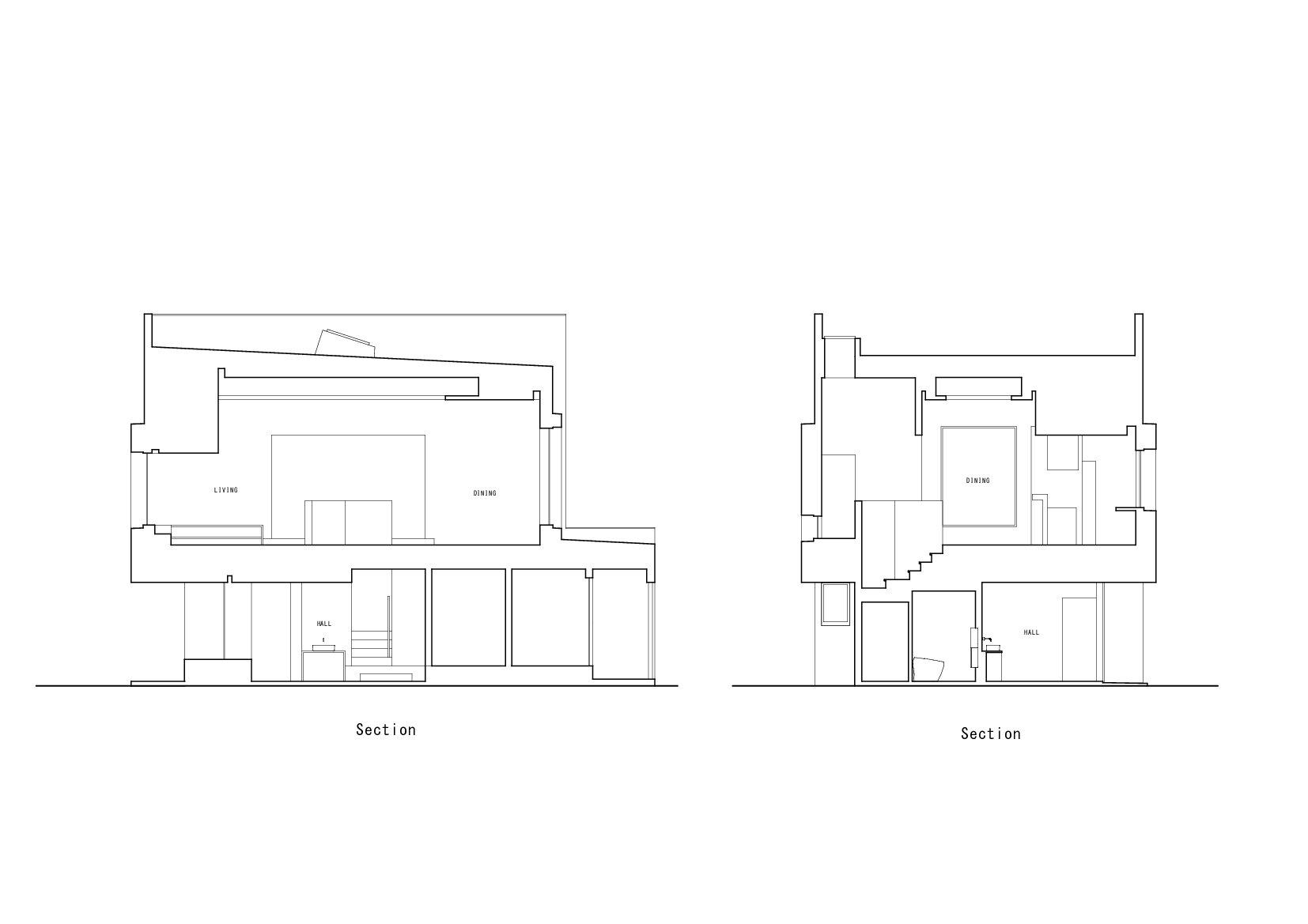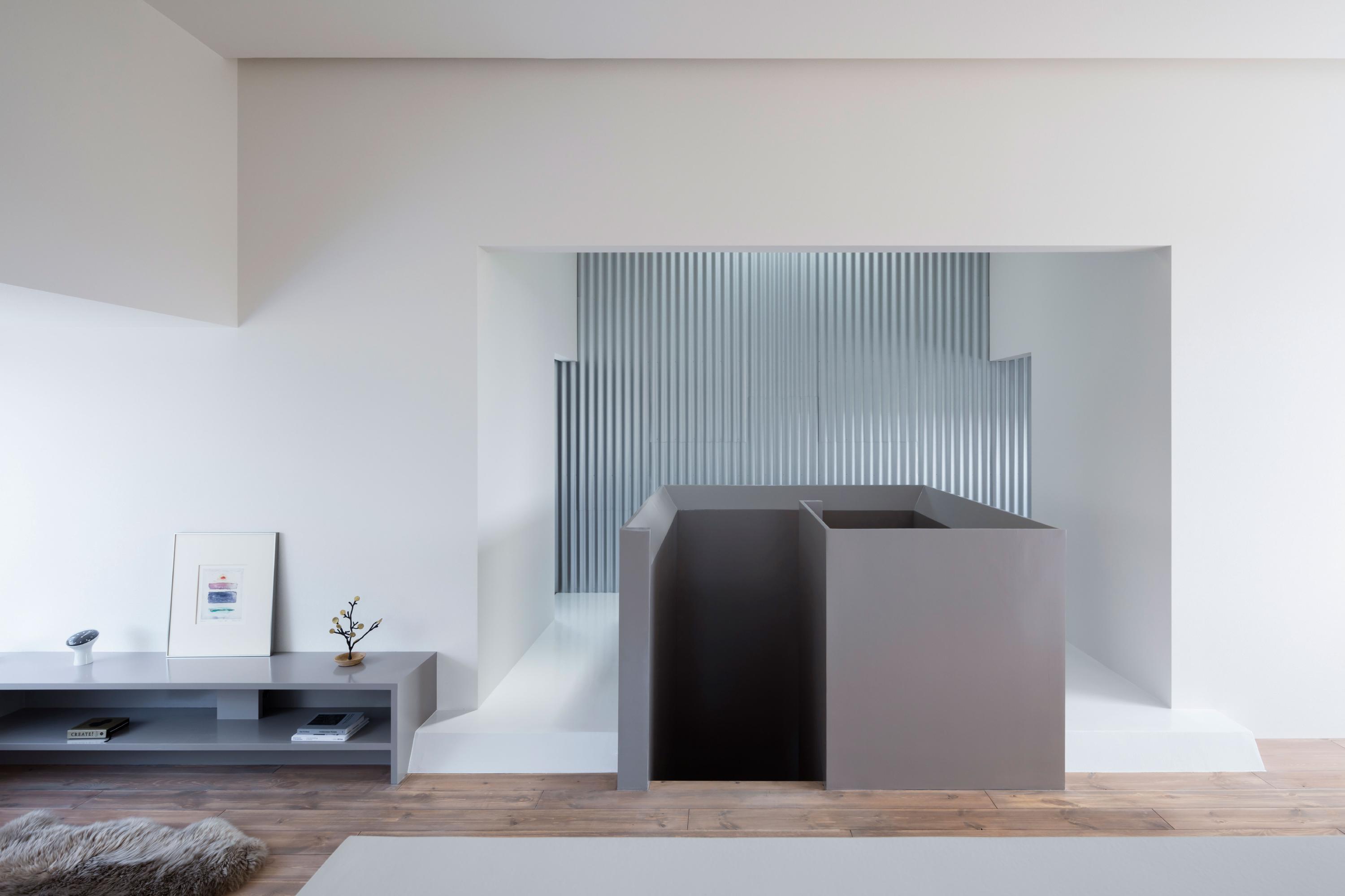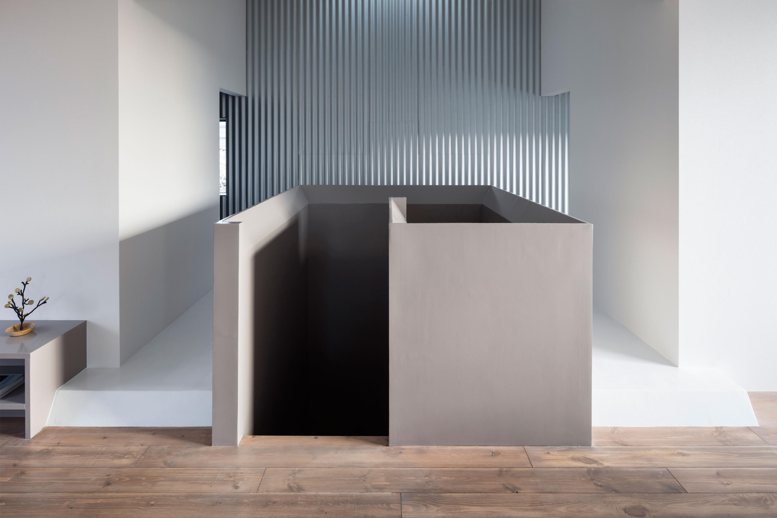 채광과 개방감도 중요하게 생각했습니다. 계단의 채광창을 통해 들어오는 빛이 계단 모서리를 선명하게 강조합니다. 또한 금속 벽에 반사되는 다양한 형태로 변화합니다. 밝은 빛이 들어오는 거실 식당에는 천장이 덮여 있어 부드러운 빛의 그라데이션을 제공합니다. 조작 조명을 건축 공간에 도입하여 각 방의 특징을 살렸습니다.translate by Deeple