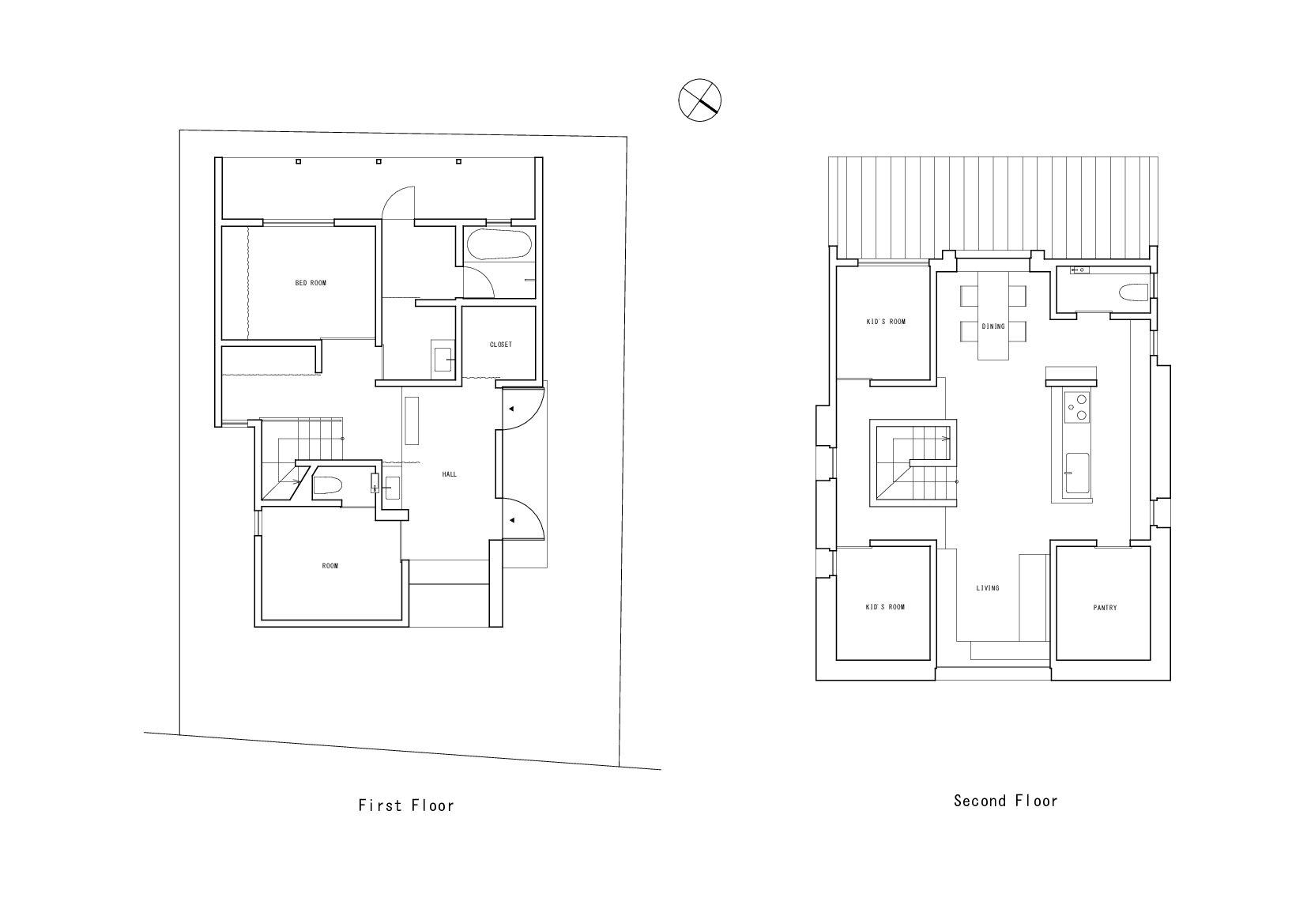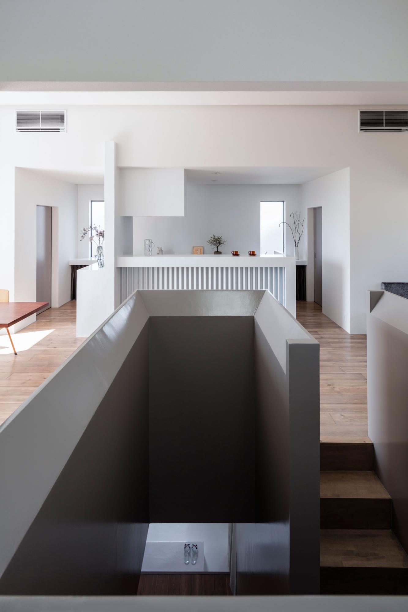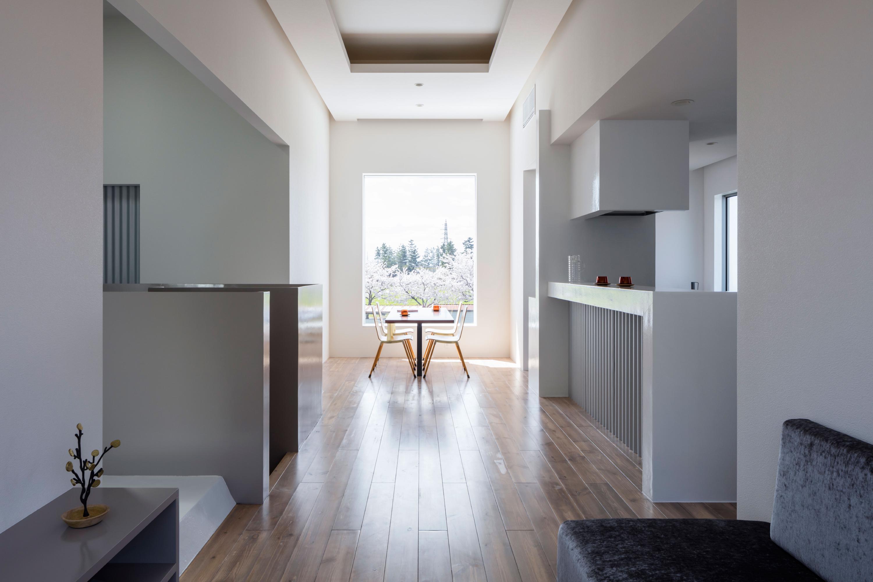 The 2nd floor centers on the one-room living dining connected with each space, providing a circulatory floor plan. In addition, a variety of ceiling heights allow the space to be recognized as a three-dimensional volume.