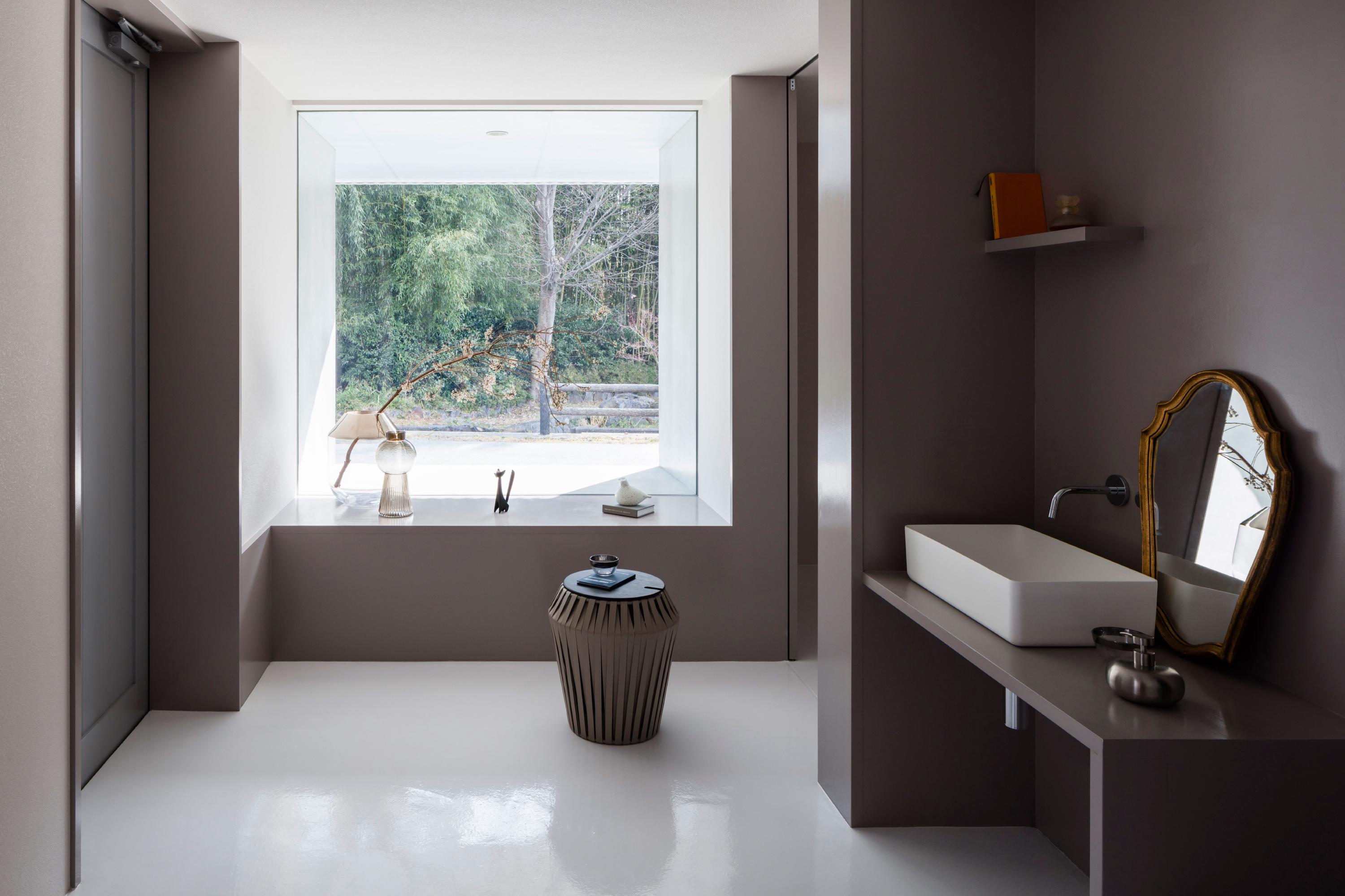 천장이 낮은 현관은 클라이언트의 매장으로도 사용할 수 있는 유연한 공간입니다.탁 트인 전망과 채광이 이 공간 특유의 편안함을 연출하며 소통을 유도합니다. 2층은 각 공간과 연결된 원룸형 리빙 다이닝을 중심으로 순환형 평면을 구성했습니다. 또한 다양한 천장 높이를 통해 공간을 입체적인 볼륨으로 인식할 수 있도록 했습니다.